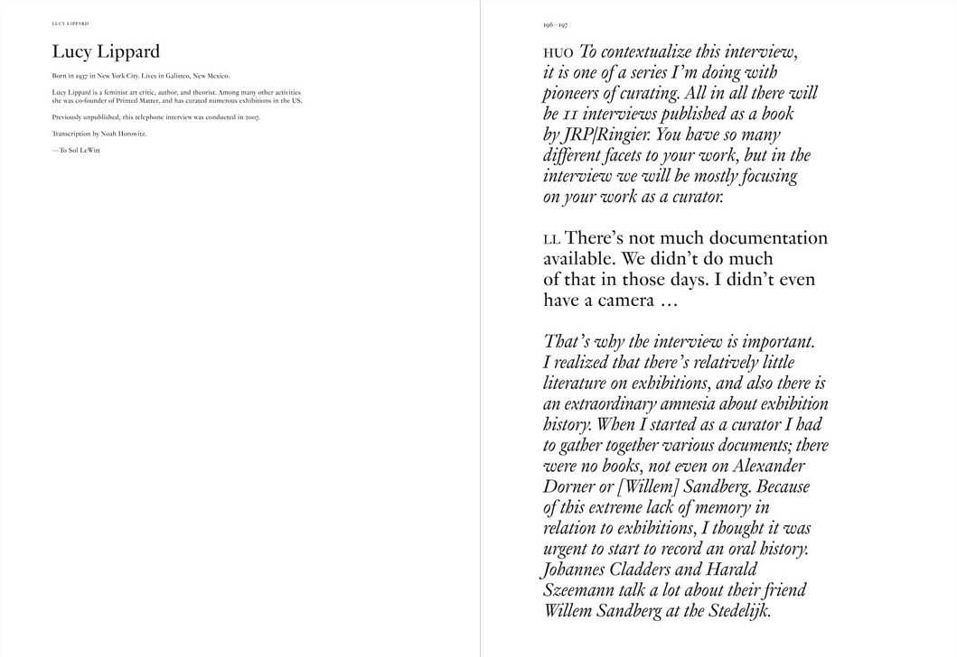 “I became interested in finding out more about the history of my own field and who the curators from previous generations were who offer a toolbox for the 21st century.” As Hans Ulrich Obrist clearly explains, this volume aims to document the legacy of legendary curators and pioneering ideas within the curatorial field, and presents a unique collection of interviews: Anne d’Harnoncourt, Werner Hofmann, Jean Leering, Franz Meyer, Seth Siegelaub, Walter Zanini, Johannes Cladders, Lucy Lippard, Walter Hopps, Pontus Hultén, and Harald Szeemann are brought together in this publication.