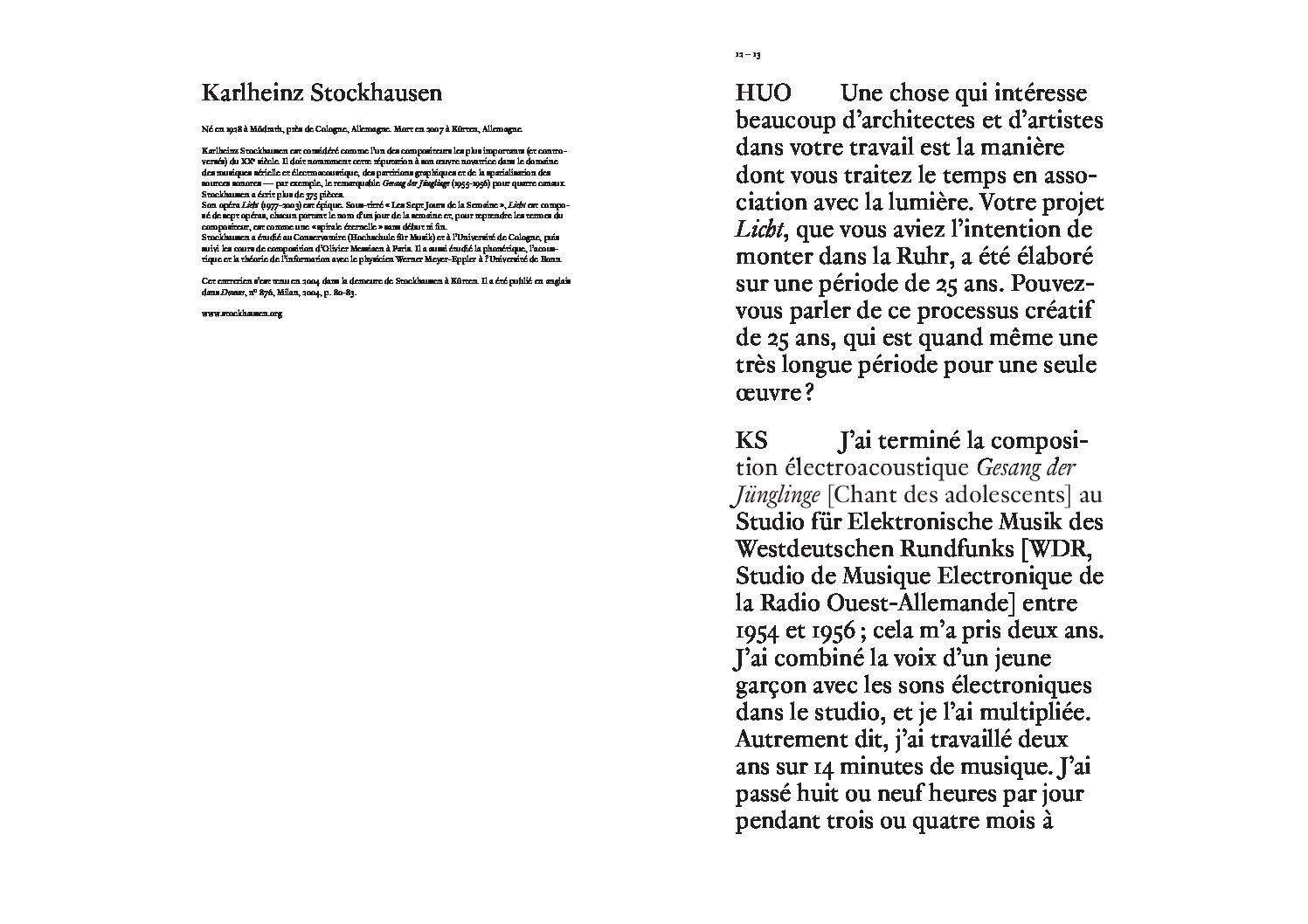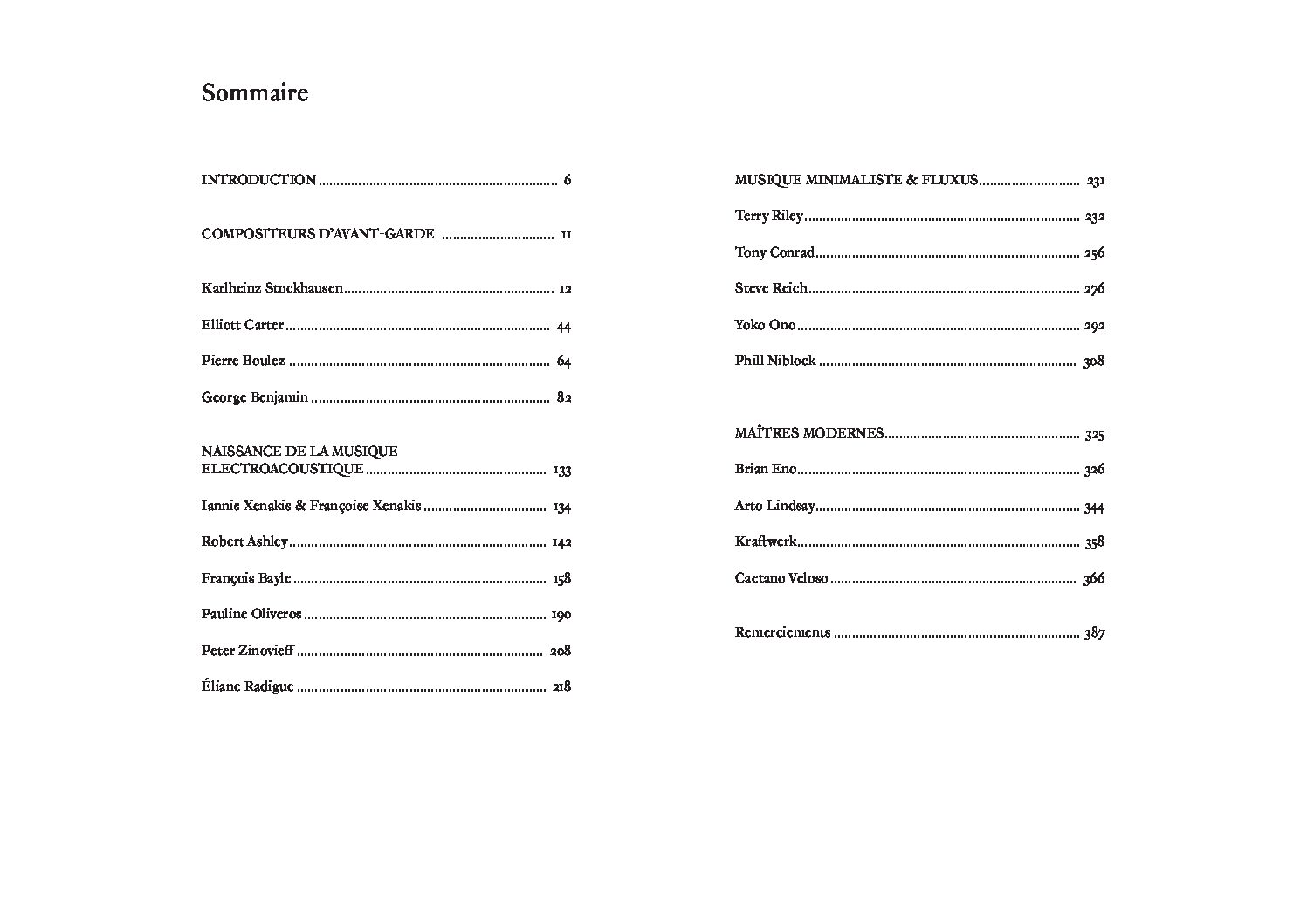 Following the success of A Brief History of Curating (now available in nine different languages, in its ninth reprint, and as an e-book), this publication gathers together interviews with pioneering musicians of the 1950s to the 1980s. The book thus brings together avant-garde composers such as Elliott Carter, Pierre Boulez, George Benjamin, and Karlheinz Stockhausen; originators of electro-acoustic music such as François Bayle, Pauline Oliveros, Iannis Xenakis, Robert Ashley, Eliane Radigue, and Peter Zinovieff; Minimalist and Fluxus-inspired artists such as Tony Conrad, Phill Niblock, Yoko Ono, Steve Reich, and Terry Riley; as well as figures such as Brian Eno, Kraftwerk, Arto Lindsay, and Caetano Veloso. Their contributions map the evolution of the musical field, from early experiments in concrete and abstract music, to the electronic development and the hybridization between Pop and avant-garde culture.