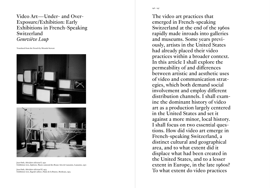 With essays by Jean-Michel Baconnier, François Bovier, Nicolas Brulhart, Renate Buschmann, Gabriel Flückiger, Marcy Goldberg, Michael Hiltbrunner, Ute Holl, Simon Koenig, Thilo Koenig, Geneviève Loup, Adeena Mey, Vrääth Ohner, Siri Peyer, Thomas Schärer, Fred Truniger, and Ian Wooldridge.