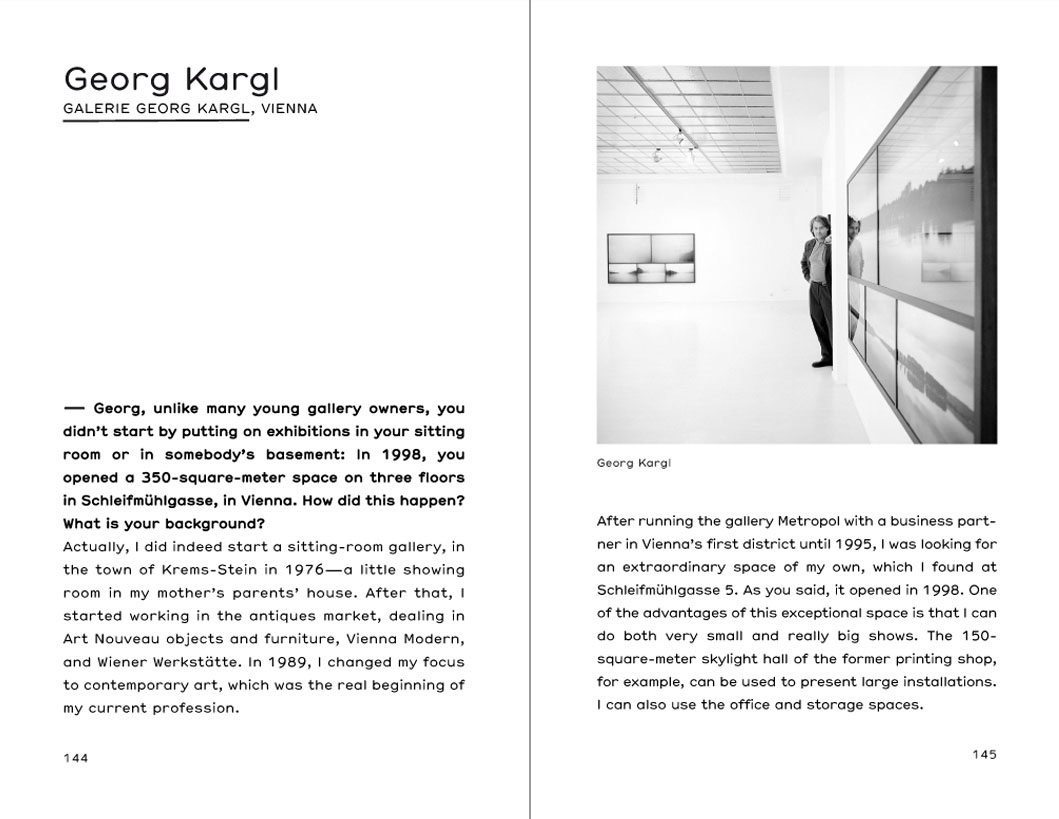 The 51 gallery owners from Europe, the Americas, and Asia interviewed in this book talk about their relationship with artists, what they love (and hate) about their work, the changes the art world has undergone since they started at the end of the 1980s, and thus give precious insights and advice to collectors and up-and-coming players in the field. At this time of an all-encompassing hybridization of roles (critics and curators becoming dealers, artists acting as curators, fair managers becoming curators, etc.), the observations included in this volume provide an extraordinary snapshot of today’s art system, reflecting its culture, strategies, and attitudes.