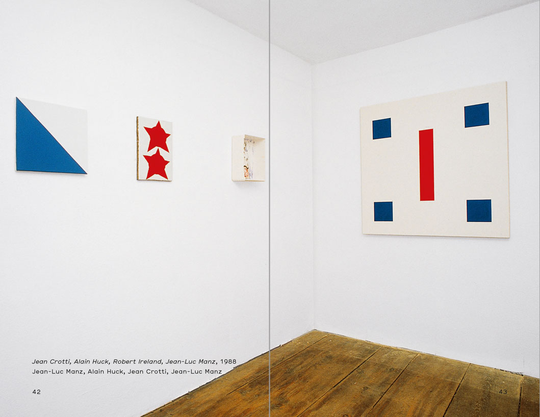 As Julie Enckell Julliard states in her essay, “The goal pursued by the collective that opened an artist-run space in an apartment, was to live a new and shared experience of art in order to test all of its aspects. M/2 asserted first a modus operandi governed by spontaneity, and the necessity of experiencing the phases of a project’s construction together: from the encounter with the artist and their work, to the mounting of the exhibition, to the dialogue with the public at the moment of the opening.” M/2 organized more than 35 projects, exhibiting artists such as John Armleder, Silvia Bächli, Francis Baudevin, Fabrice Gygi, Eric Hattan, Stephane Huitmere, Olivier Mosset, Ugo Rondinone, George Steinmann, and Bernard Voïta.