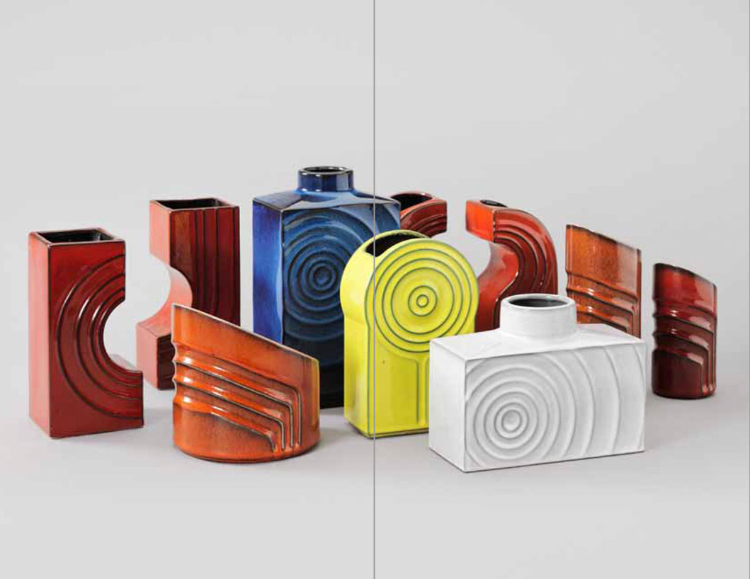 Whether it is a question of Sgrafo vases, of Raymond Loewy’s “Form 2000” for Rosenthal (1954), or of the improbable “Fat Lava”glacis of the 1970s, postwar German ceramics attest to a surprising stylistic inventiveness and diversity.
