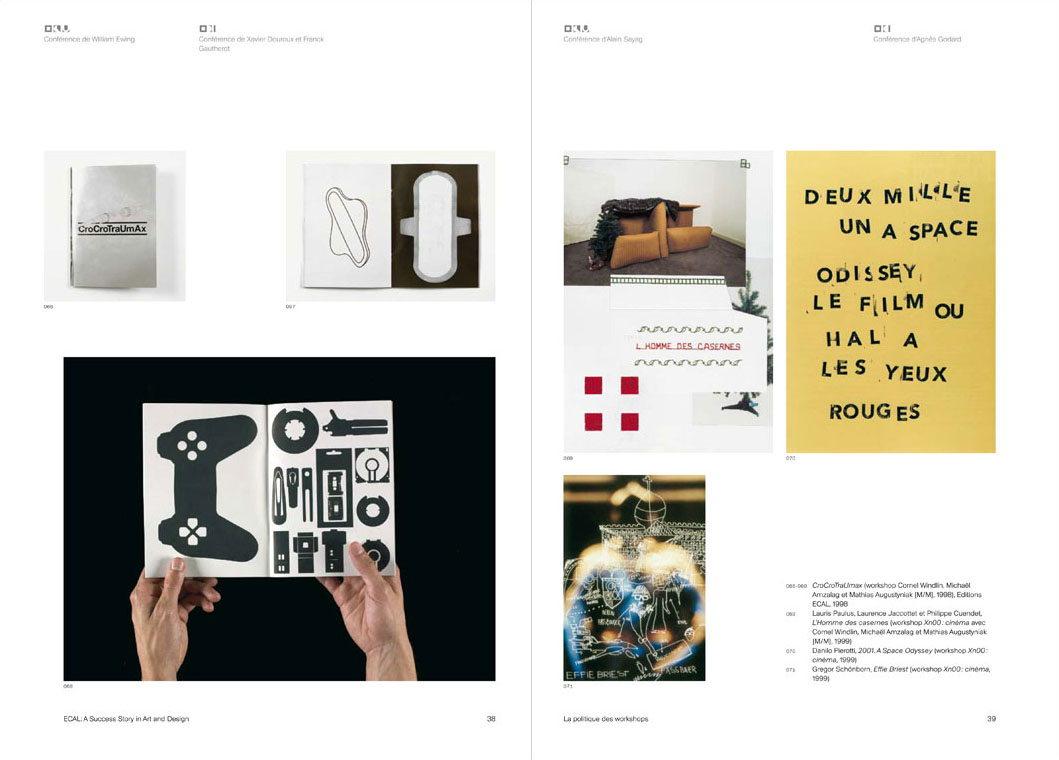 The publication recounts and documents, somewhat in the style of a history book, the principle steps, achievements, and teaching principles which have led the Ecole cantonale d’art de Lausanne from the position of a regional school to that which it occupies today. This success story is, of course, that of its director Pierre Keller, but also that of a team, the range and diversity of which we discover here, alongside that of their students, the work of some of whom is probably not unknown to the reader.
