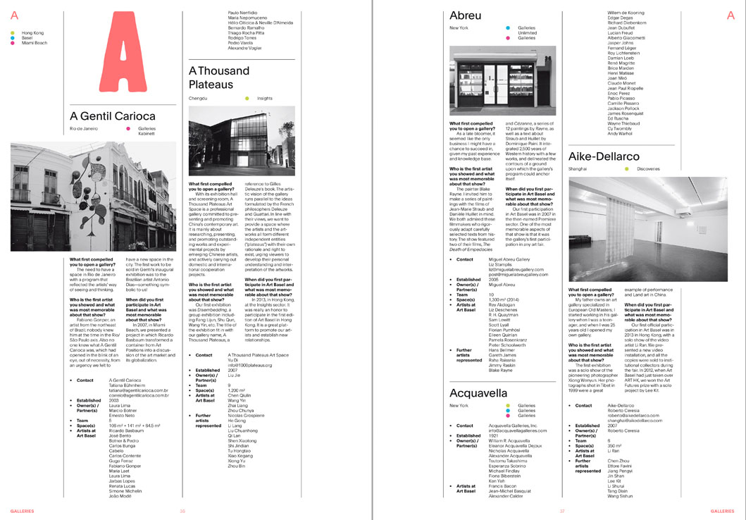 “Art Basel | Year 44,” designed by Gavillet & Rust (Geneva), has an A-to-Z format that maps the world of Art Basel with a comprehensive look at the shows of 2013. This elegant, hardcover publication offers the widening audience of art lovers a compilation of portfolios, interviews, and essays on contemporary art, and lists all exhibitors participating in the three exhibitions. It depicts works from the different shows’ sectors, highlights events and talks, and gives art world experts, curators, and collectors a platform for sharing their expertise, providing an immersive art experience for the reader.