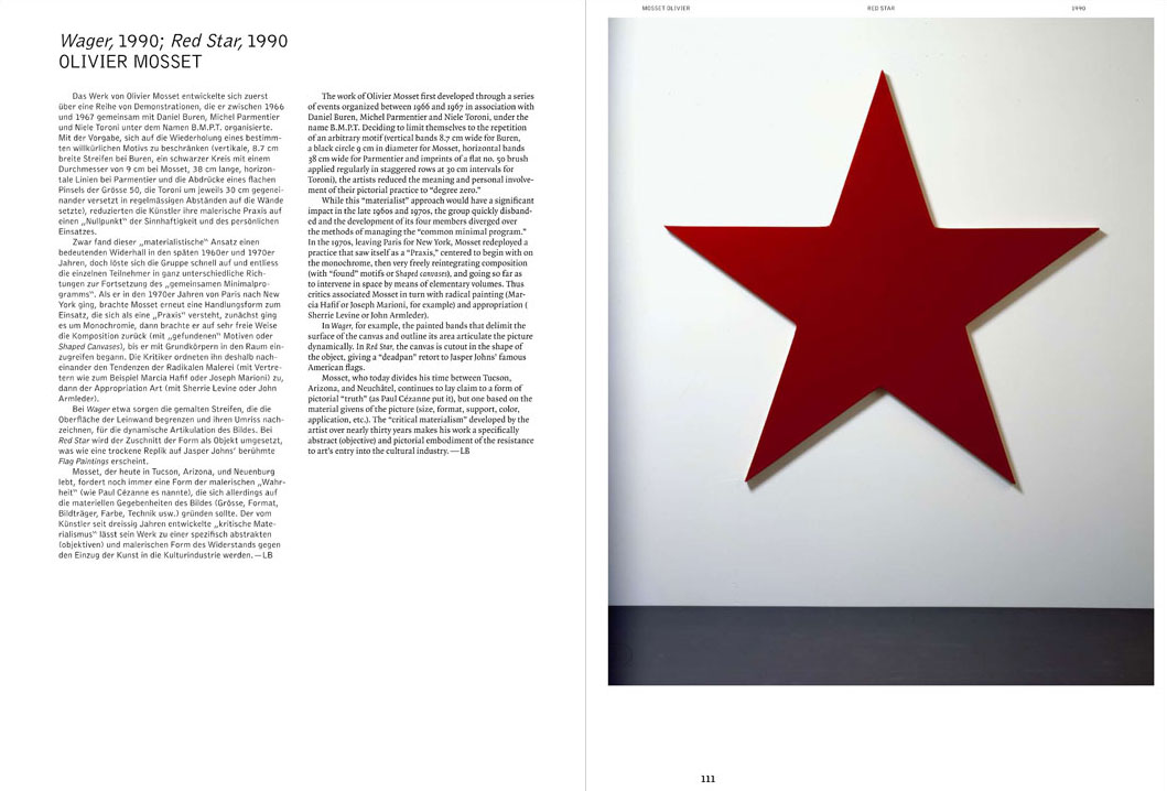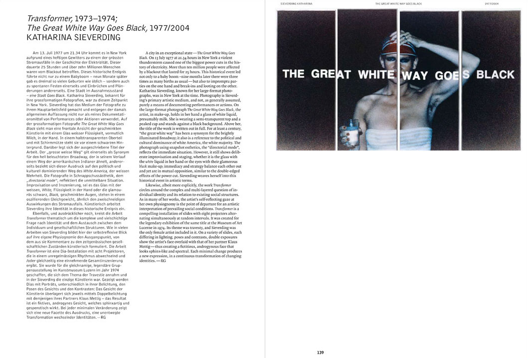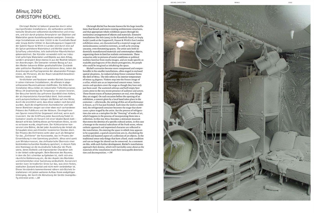 The large-scale illustrations are accompanied with texts by writers such as Tom Holert, Tirdad Zolghadr, and Jan Verwoert, reflecting different museums and collection strategies, and referring in particular to the history of the museum which was founded in 1996. Further texts by Philip Ursprung, Heike Munder, and others, outline the main thematic focuses of the collection as political art, participation strategies of the 1990s, glamour and Pop, and the psychological meaning of space and architecture in contemporary art. Short texts by Raphael Gygax, Judith Welter, and Bettina Steinbrügge highlight a selection of specific works and artists in the collection.