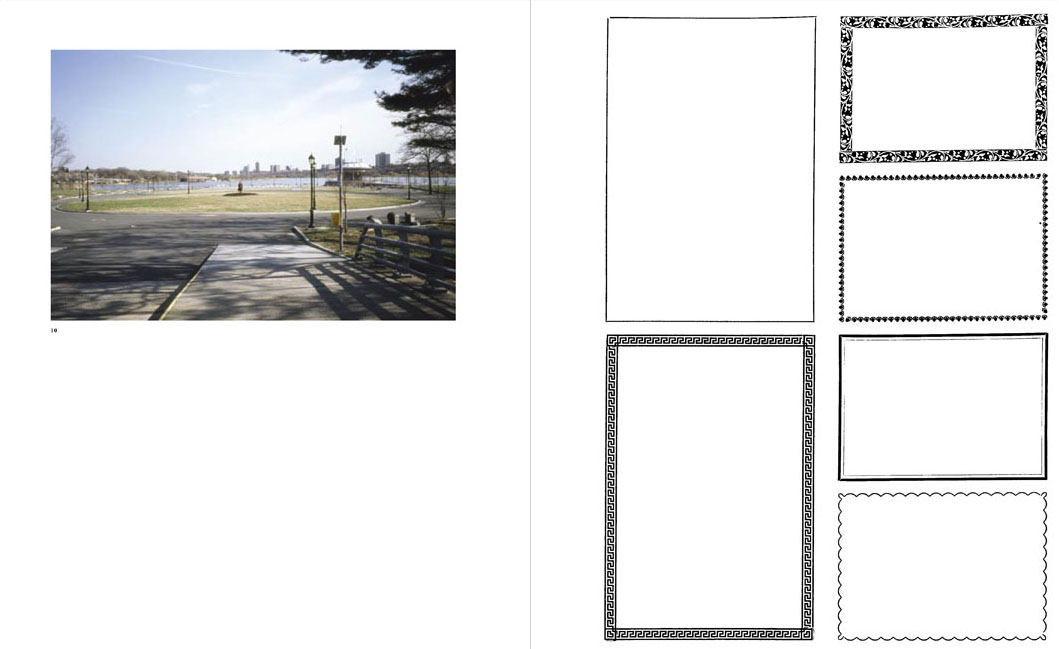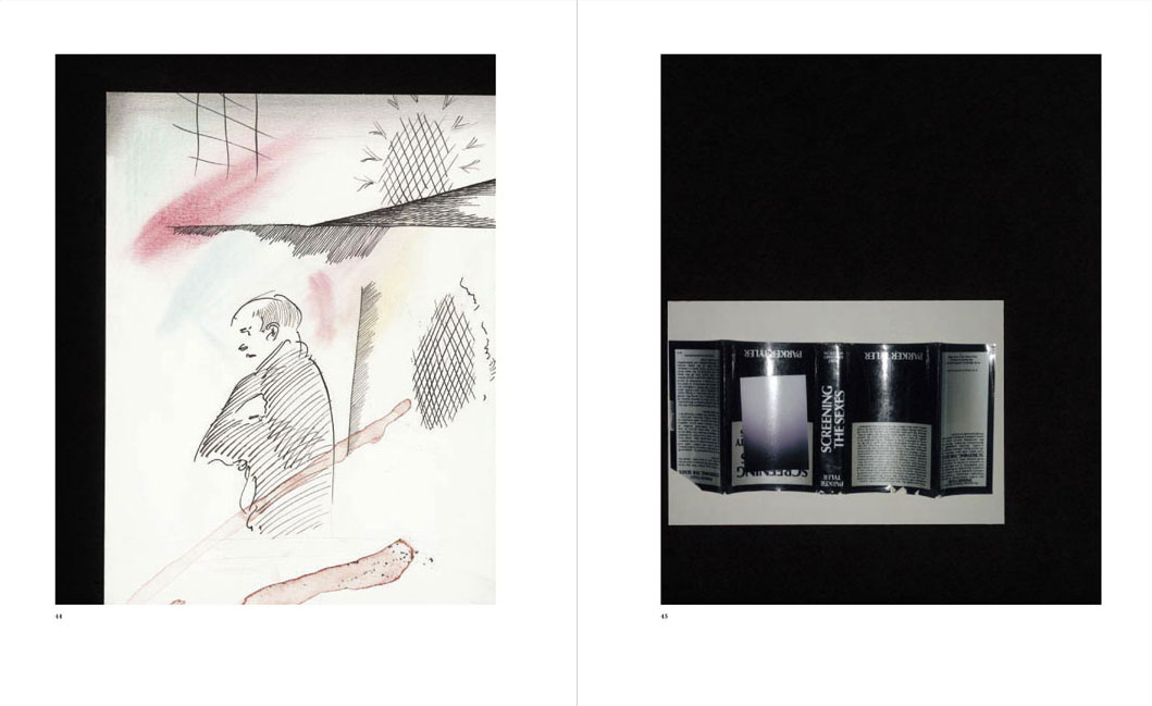 The book contains drawings and collages by Nick Mauss and stills from videos by Ken Okiishi. The images form a kind of associative narrative through the book, containing subjects as lost places, singled-out figures, book covers, and typographic elements.