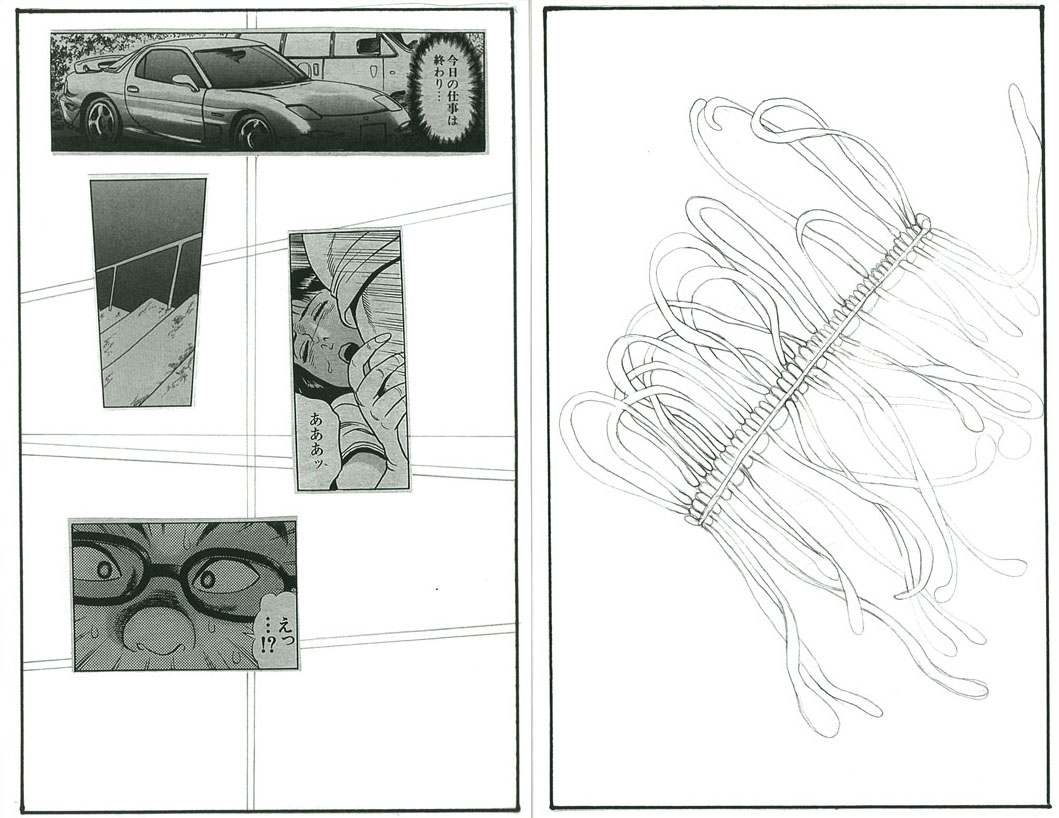 “Black Noise” is a box set of 32 publications conceived according to the model of American comic books. Each volume is designed by a different artist, linked in some way to Steven Parrino, by projects and exchanges, by friendship, by reciprocal inspiration. “Black Noise” celebrates a format that Steven Parrino was fond of, a culture that was familiar to him. The only constraint upon the authors invited in spring 2005 was the format and the title of the overall publication. Some directly evoke Steven Parrino’s personality, whereas others produce a less referential contribution.