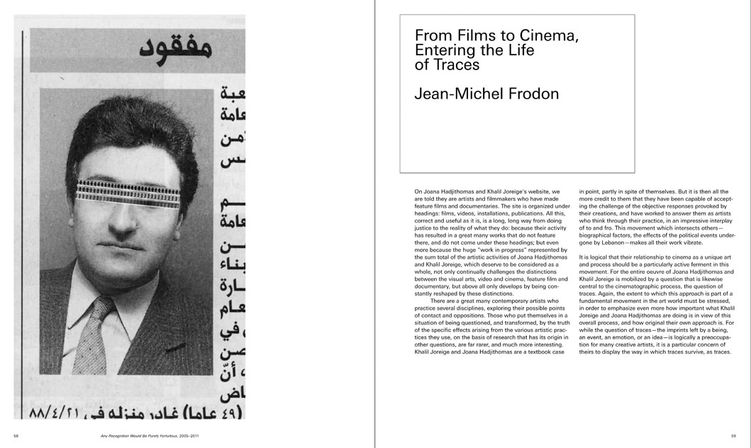 Following the duo’s bodies of work since the early psycho-geographic mapping of Beirut to the recent projects gathered together under the title “Lebanese Rocket Society,” this book is the first reference monograph dedicated to the artists. Essays by Guggenheim Foundation Curator Suzanne Cotter and cinema critic and historian Jean-Michel Frodon, as well as a conversation held by Michèle Thériault, Director of the Leonard & Bina Ellen Gallery, Montreal, with fellow artists and thinkers (Jalal Toufik, Etel Adnan, Dominique Abensour, etc.), explore the numerous themes of their practice.