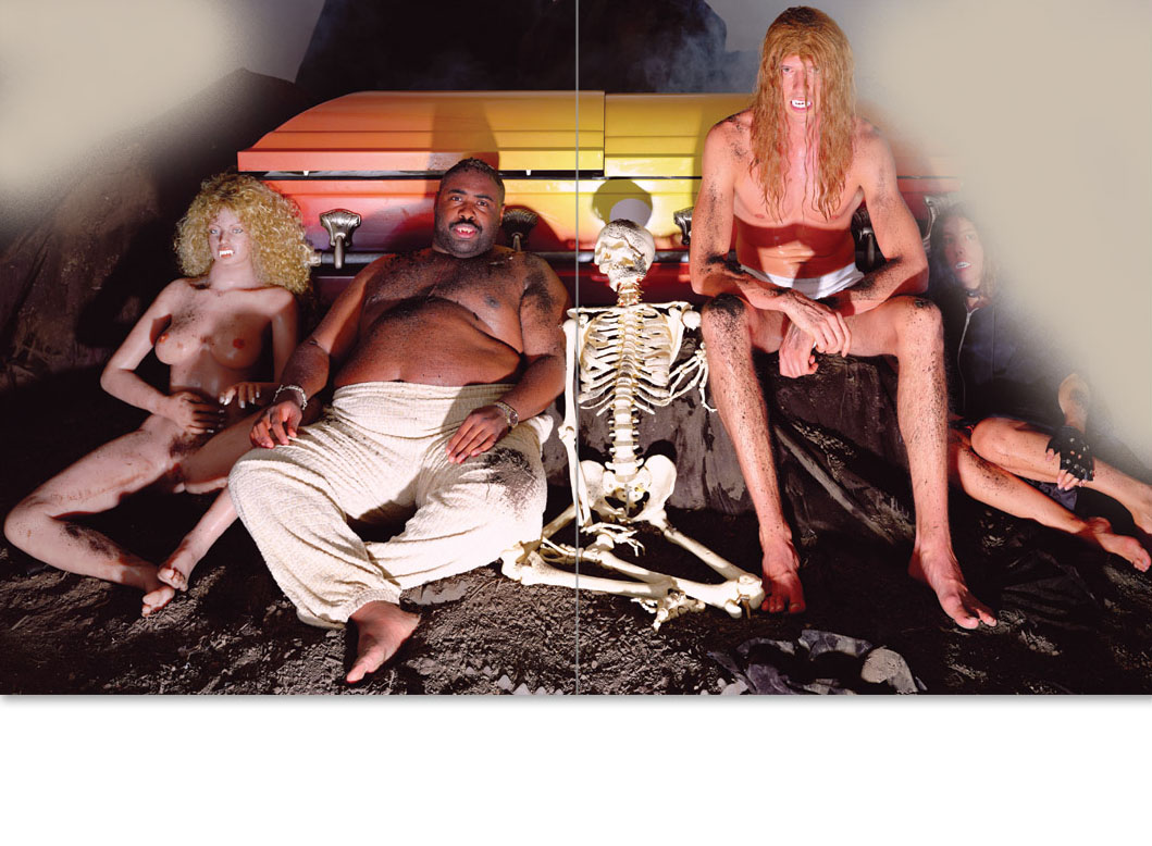 Olaf Breuning’s work use state-of-the-art technology with shock effects from the entertainment industry or the high-gloss quality of advertising. His videos feed off clichés from the media and popular culture and are simultaneously “failed” and accomplished, creating a universe of artificial realities and quoted artificialities. In the large-format photographs that Breuning often displays in conjunction with his installations and performances, the visible method of construction is similarly an equally essential component of the given composition.