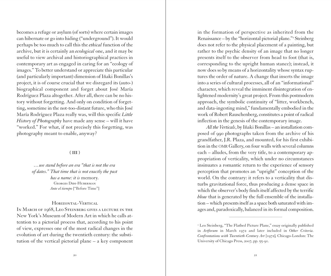 The book “J.R. Plaza Archive” sets out to assemble a series of theoretical and literary digressions by an equal number of writers, philosophers, and poets, on 20 of the works that Bonillas has created from the material of this archive: a vast collection of images that appears to have awakened in the artist a need to explore the possibility of ultimately exhausting all its combinations and variants.