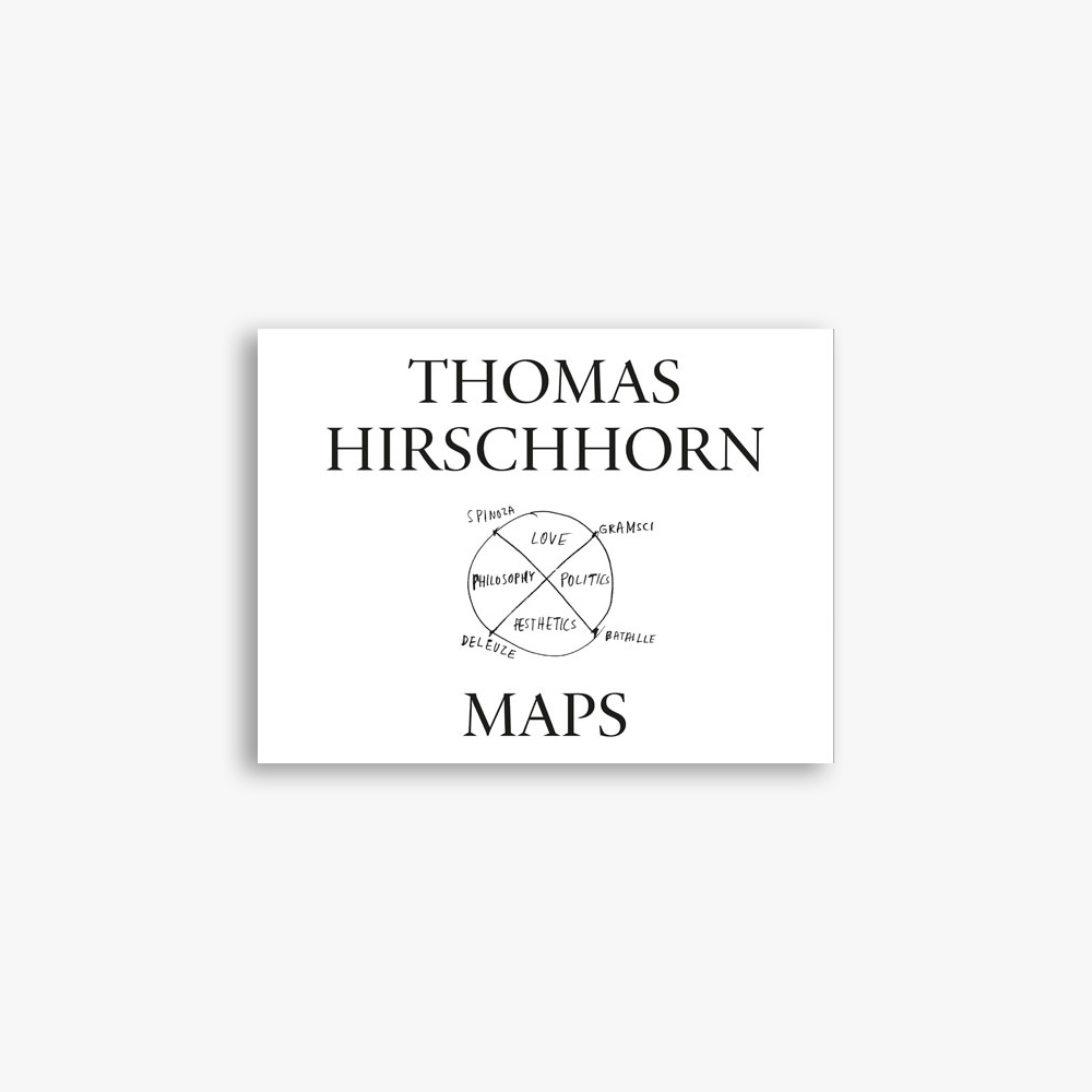 Bringing together 13 Maps realized between 2003 and 2013 by Swiss artist Thomas Hirschhorn, some of them in collaboration with Marcus Steinweg, this volume focuses on this particular aspect of his practice, which could be seen as a matrix for understanding his unique position within the art world and visual culture. As the artist himself explains: “With my Maps, I want to make clear I have a goal, that I am also a maker, and not only a thinker, a theoretician. I want my Maps to be statements and also commitments toward myself, first and foremost.”