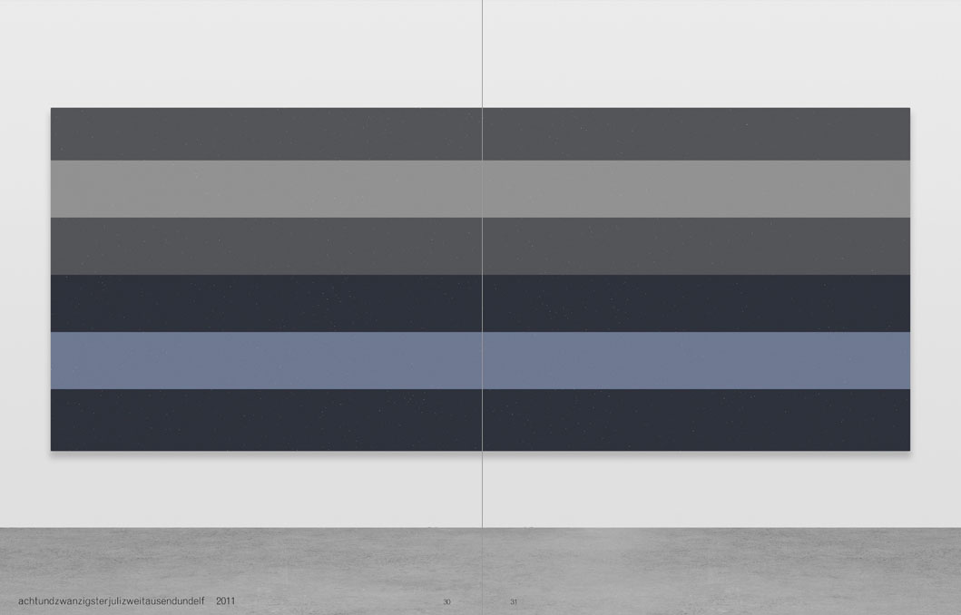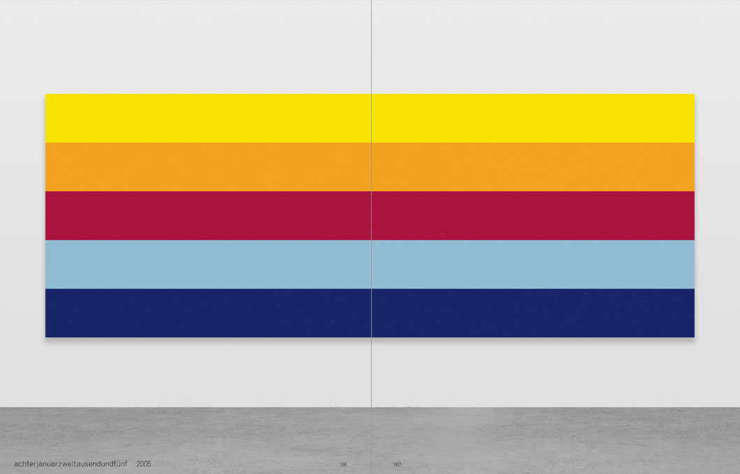 A new series of three publications extensively documents three of his most renowned series: the Landscape Paintings, the Horizon Paintings, and the Sun Paintings. In the second volume dedicated to the Horizon Paintings (1999–2011), artist and writer Phong Bui retraces the genealogy of stripe paintings from Barnett Newman to Rondinone, while art critic Bob Nickas thoroughly examines the making and meaning of painting in his work. He states: “While it is true that Rondinone has followed many paths over time, he has found ways for them to converge and align, to overlay abstraction and representation, reality and the unreal, artifice and the sublime. It has never been possible to predict where he will venture next with the products of his mind, and it remains so, as these stripe paintings metaphorically suggest: a sustained event-horizon or point of no return, where one can never apprehend the end of the line.”