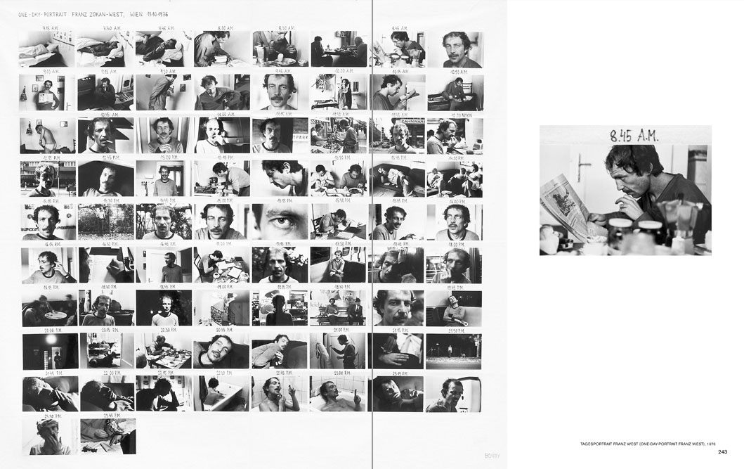 Kubelka started on her long-term project, “Year’s Portraits,” in 1972: she photographed herself on a daily basis over a period of one year—a process that has been repeated every five years since. This conceptually-structured work on the subject of self-portraiture produces a complex picture of a woman’s search for her own identity by alternating exaggerated poses of female self-representation with documents of personal retreat. Through the choice of staging and props, minor adventures and personal experiences are hinted at; the individual photographs seem to link up to form a film running at a rate of one frame per day.