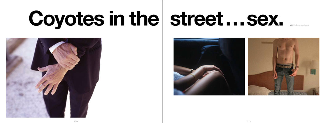 “Sunsets over the Pacific… Surfers… Movie stars… Coyotes in the street… Sex.” Doug Aitken’s “The Idea of the West” presents the collective response of 1000 people on the street who were asked “What is your idea of the West?” to create a manifesto from the quotes and comments of random individuals. Through an amazing assortment of over 200 color and black-and-white images juxtaposed with responses to this question, “The Idea of the West” takes the reader on a high-speed journey across space and time to trace the mythology of the New West.