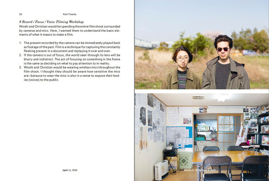 The book brings together different layers of the project, combining the postal conversation by Woohi and Christian in which they introduce themselves to each other, image material from Tanaka’s film and documentation, as well as reflective texts by the artist on the project. This is accompanied by texts from Migros Museum für Gegenwartskunst director Heike Munder, art historian Elsa Himmer, and Tong-Hyon Han, an associate professor of sociology at the Japan Institute of the Moving Image in Tokyo and expert in the field of the ethnicity of Zainichi Koreans in Japan.