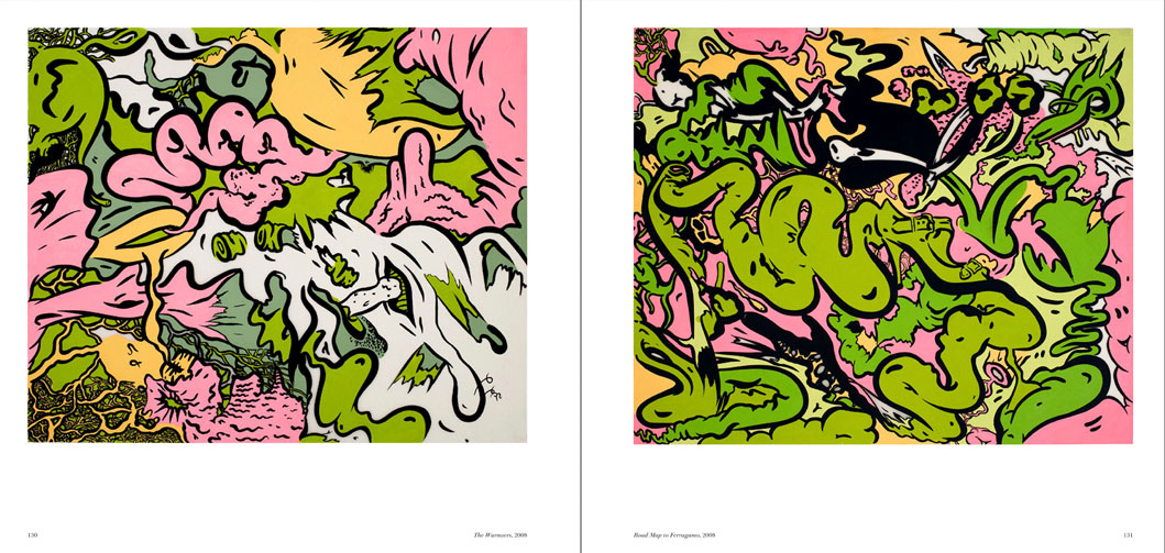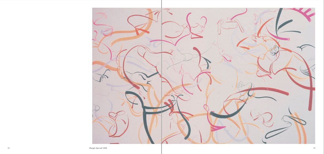 This first comprehensive monograph dedicated to the American artist Sue Williams follows her work from the early 1980s to her most recent paintings. As Ruth Erickson explains in her essay, “Wanting to paint as a student at CalArts in the 1970s heyday of conceptualism, and interested in drawing as a young artist during the painting boom of the 1980s in New York, Sue Williams tends to occupy the margins. She productively and selectively works out of step with dominant trends and discourses, devising visual strategies that engage the contexts of contemporary art and politics in striking ways. Over the course of her 40-year career, Williams has made an array of artwork, from modest paintings of mostly representational scenes in a cartoonish style to large-scale abstract paintings erupting in brilliant colors.” Sue William’s paintings have constantly straddled a narrow line between figurative depiction and complete abstraction, as in some works of the early 2000s, in which the monochromatic brushstroke becomes a central element. In her newest works, these two realms are mixed anew, for although the images are abstract, the beholder comes across recognizable details—individual body parts or formations reminiscent of human organs.