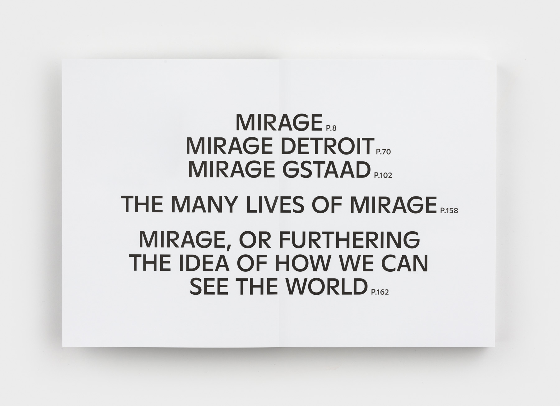 Dedicated to the three iterations of the Mirage installation in Palm Springs, Detroit, and Gstaad (2017–2021), this publication offers the reader an experiential book that shares some of the characteristics of Mirage: the immersive emotion, the disrupted perception, the merging of the viewer and the landscape. This unique publication is thus not only about Mirage; it is conceived as an immersion in the artwork’s atmosphere.