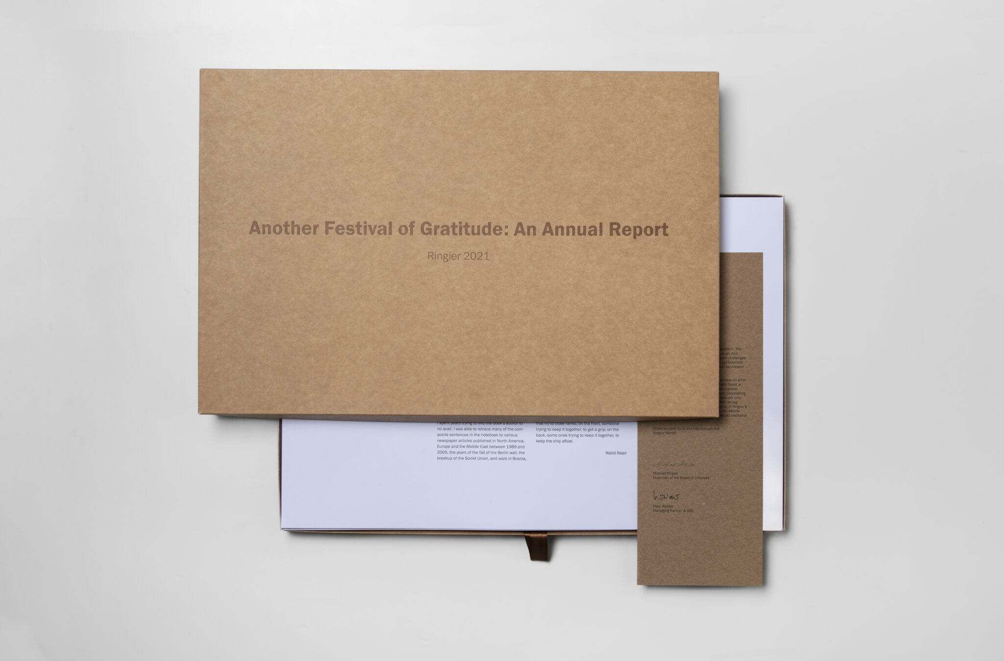 Since 1998, Ringier, the Swiss-based global media company, has traditionally commissioned an artist to design its annual report. Publisher Michael Ringier and curator Beatrix Ruf initiated this series as a means of reinforcing the links between art and the activities of the company.
