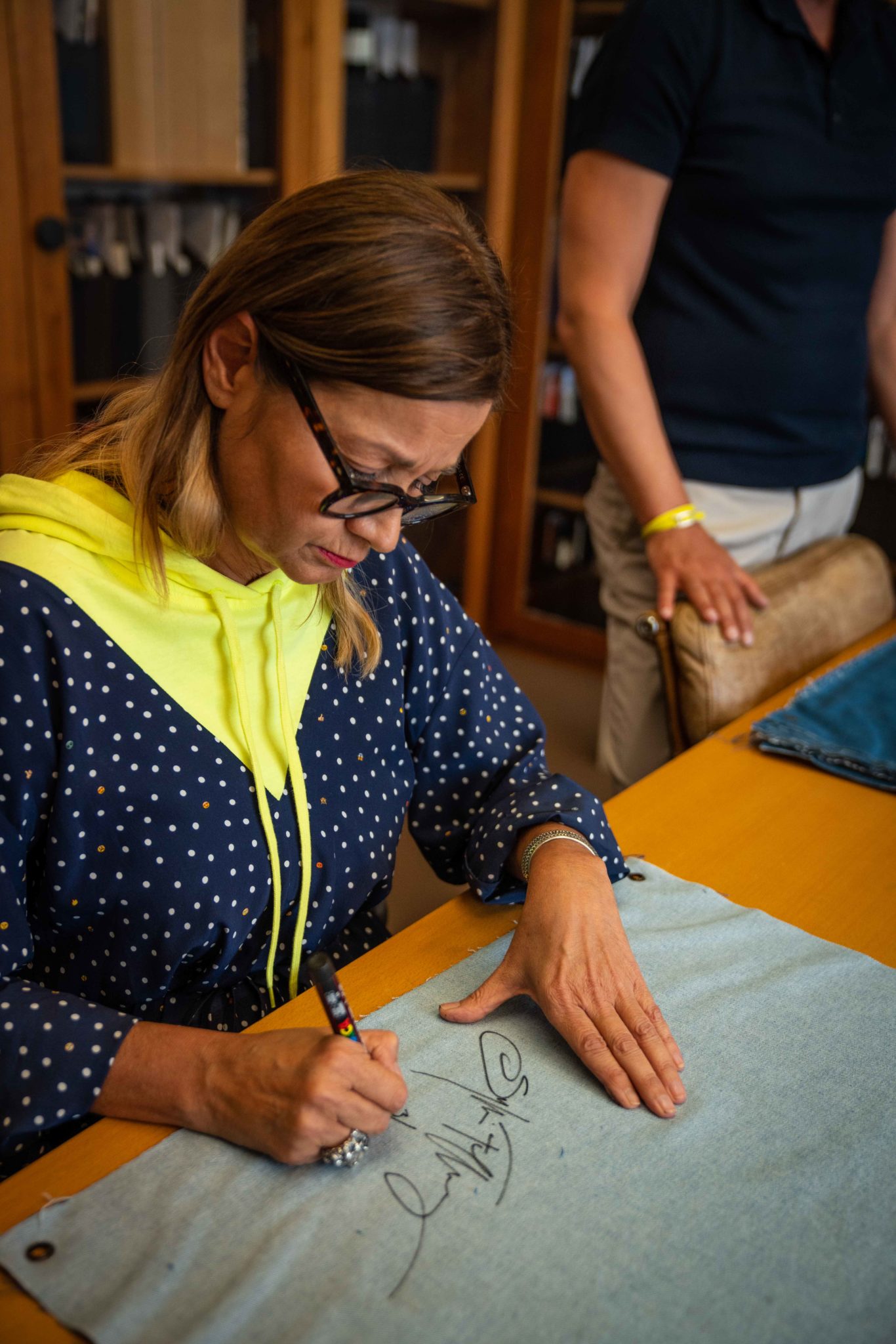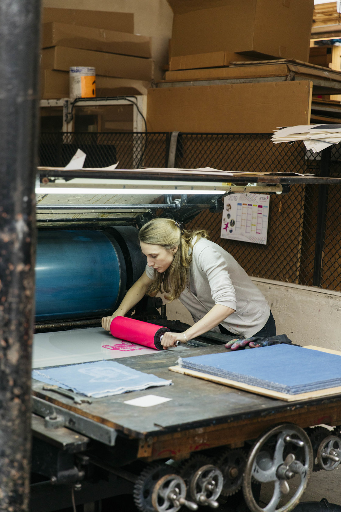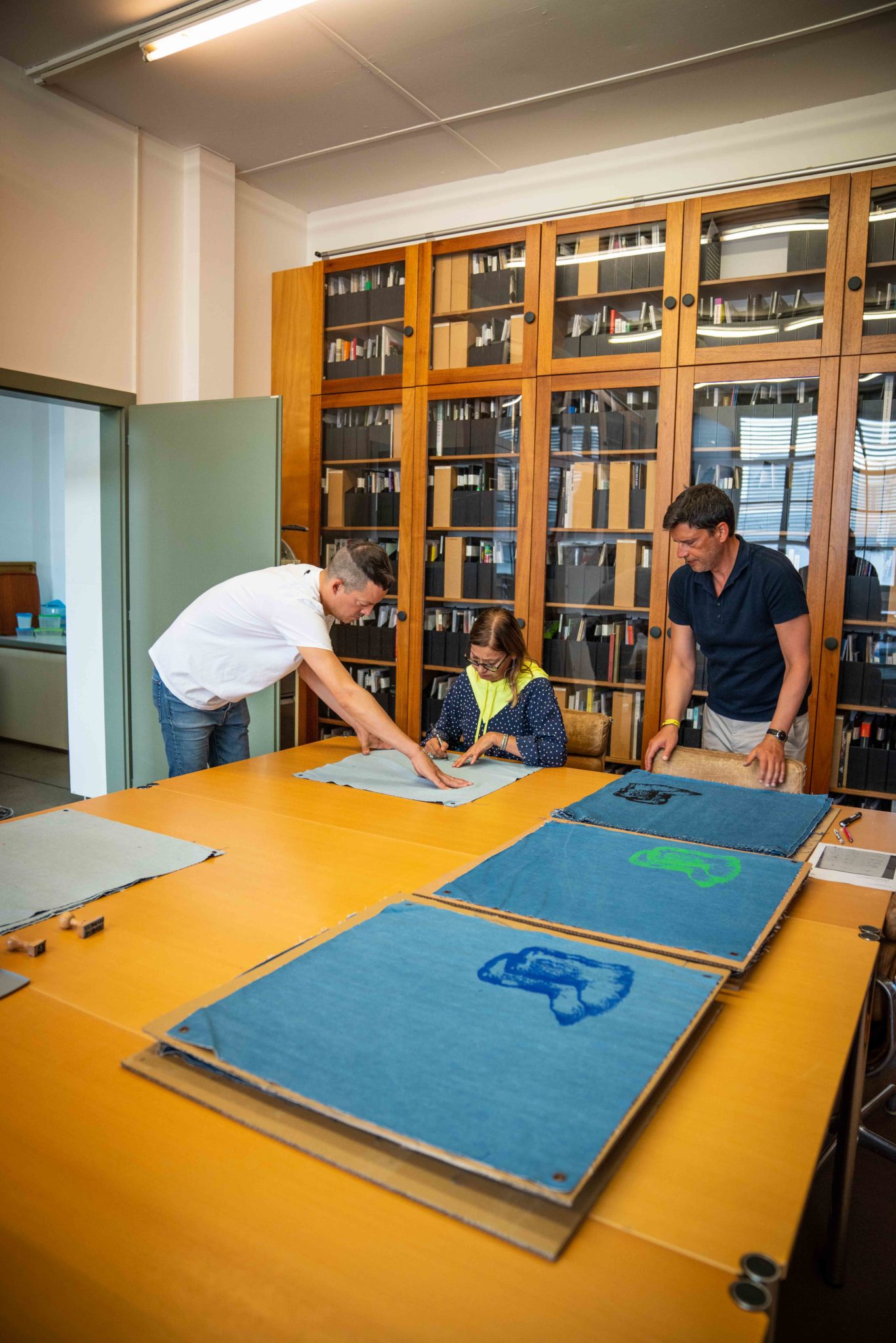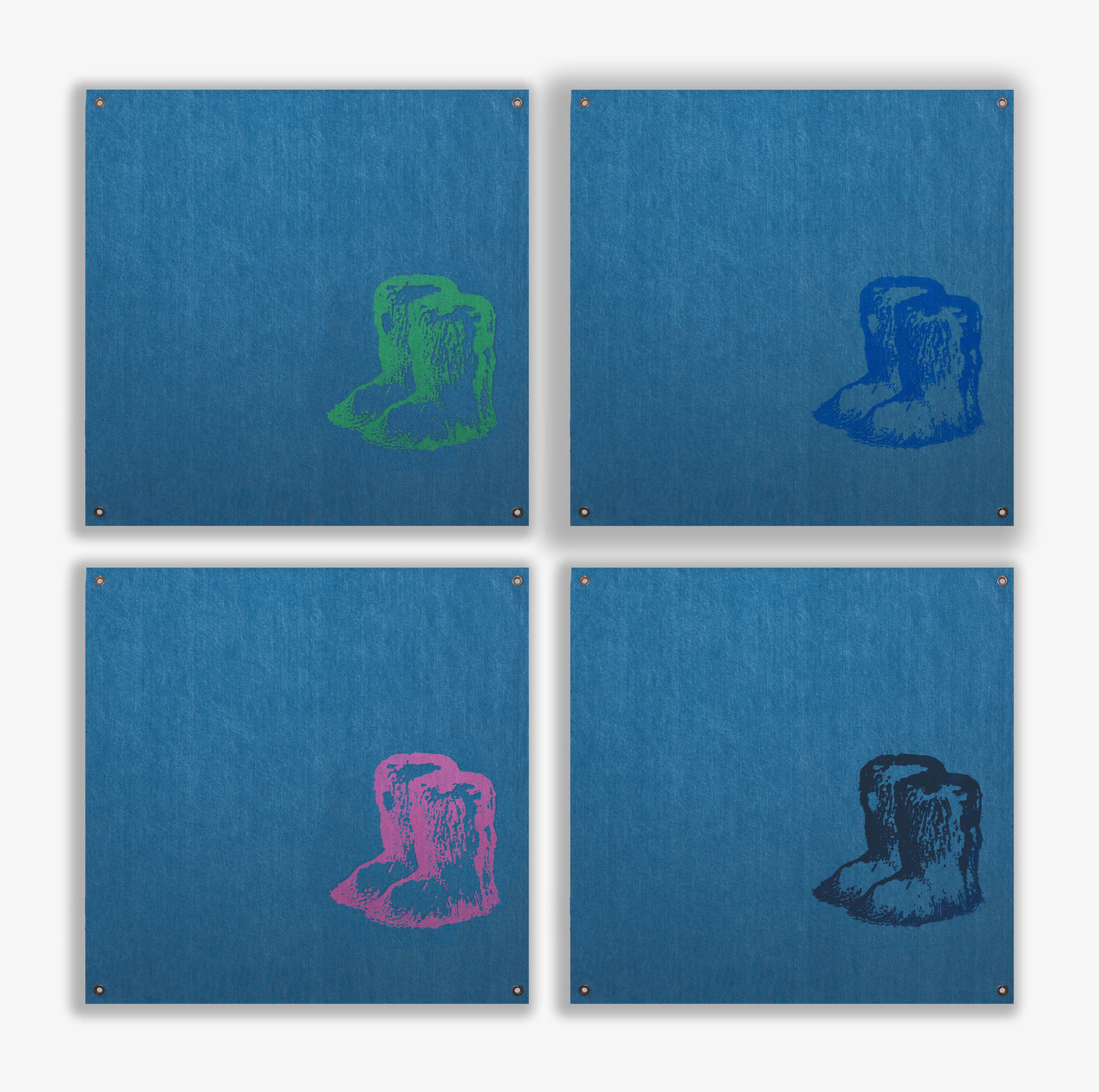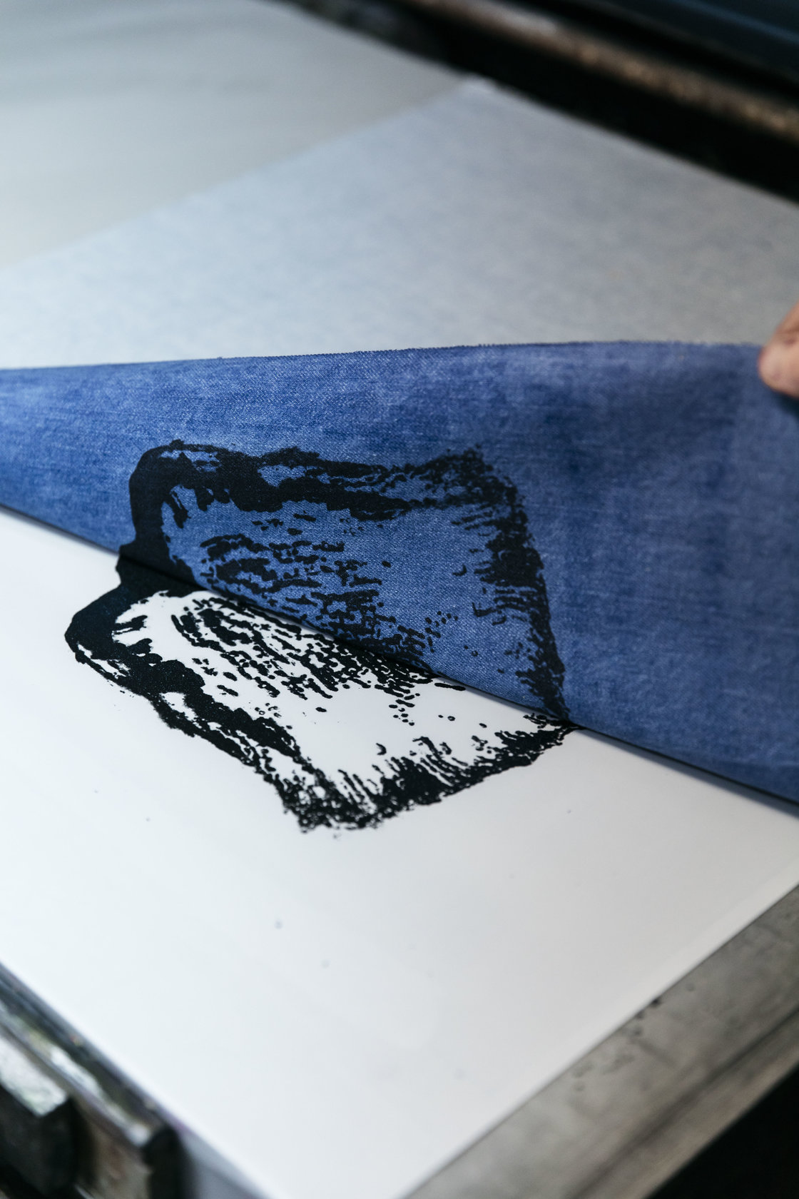 4x Lithographs on denim 1 color printed with Marinoni press lithographic and hand cut.