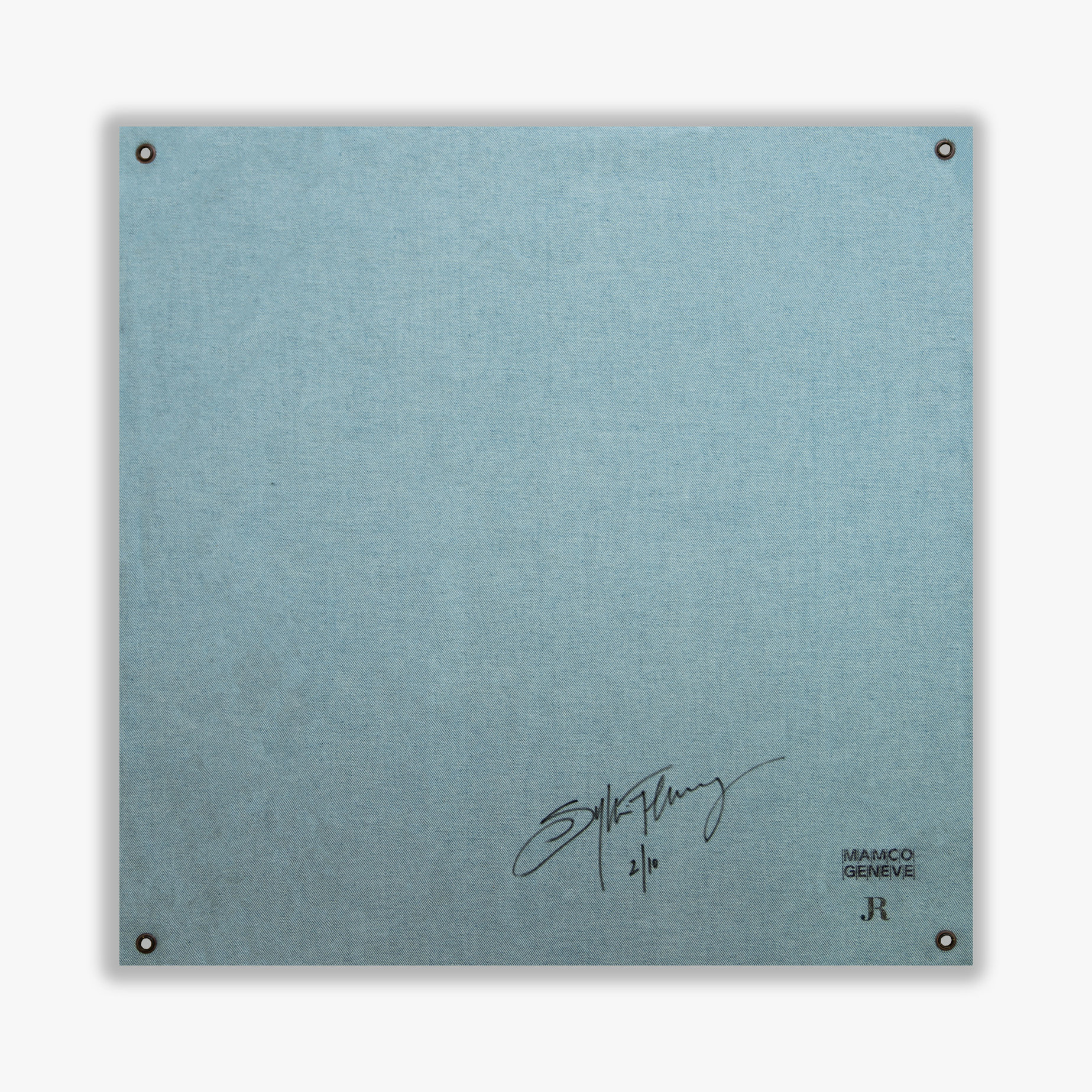 4x 4 engraved eyelets with the initials "SF" at the 4 ends of the lithograph.