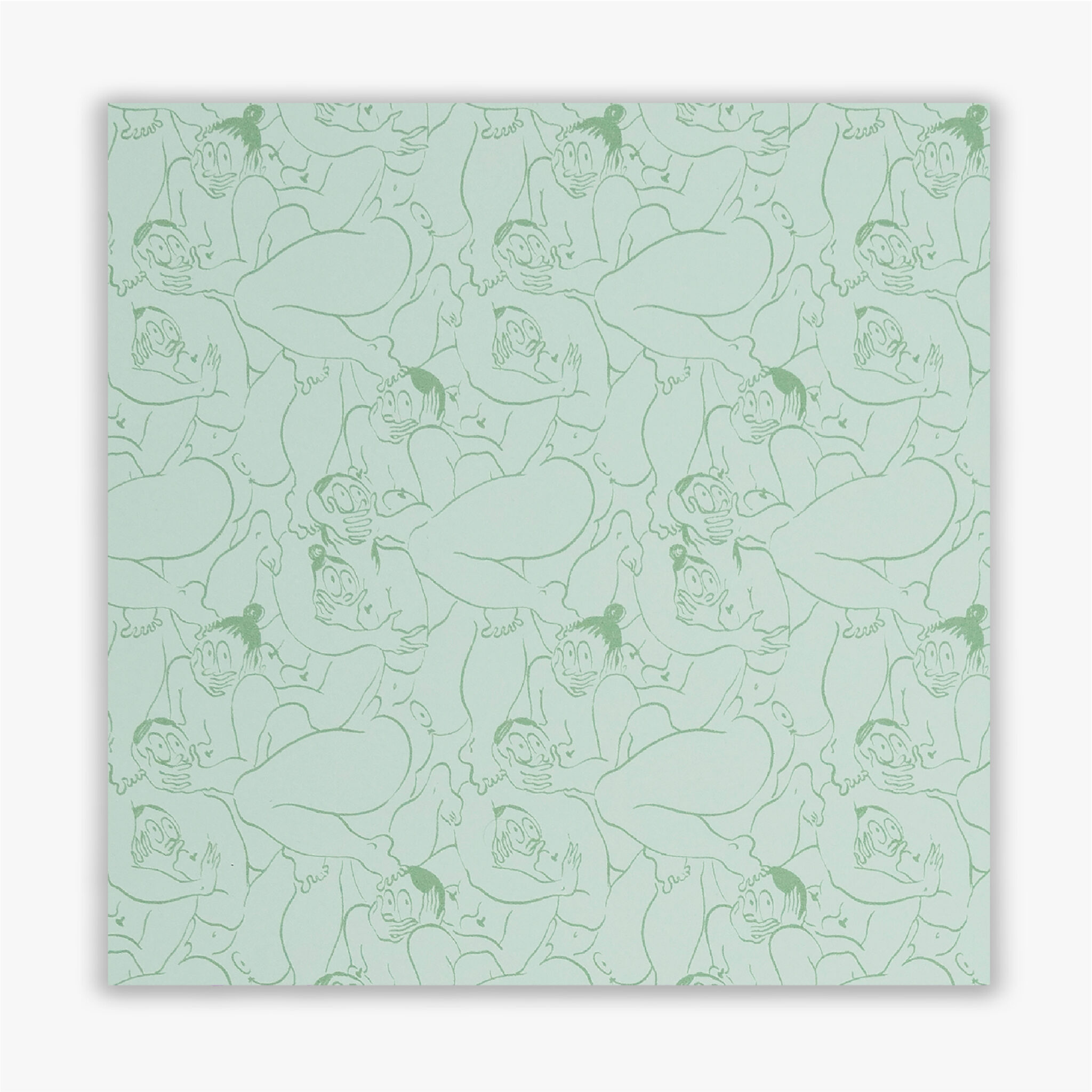 Ebecho Muslimova has gained recognition for the depiction of her alter ego FATEBE, a plump and exuberant personality who subsumes the neuroses and anxieties of her creator. This character has allowed her to explore a diverse range of issues related to the depiction of the body – particularly the female one. Set in fantastical painted landscapes or rendered solo in flowing brushwork, Fatebe explodes the social expectations of the female body through brazen displays of sexuality, vulnerability, and humour. If Fatebe is usually represented only once in each of the artist’s composition, in the series of pattern lithographs, it is not one but hundreds of Fatebe that are represented.