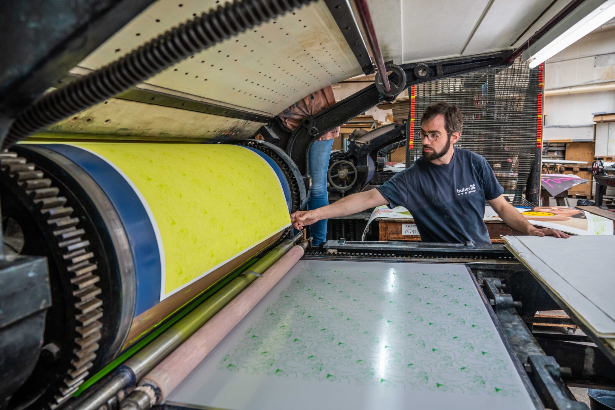 4x 2-color lithographs printed with Marinoni lithographic press, hand cut.