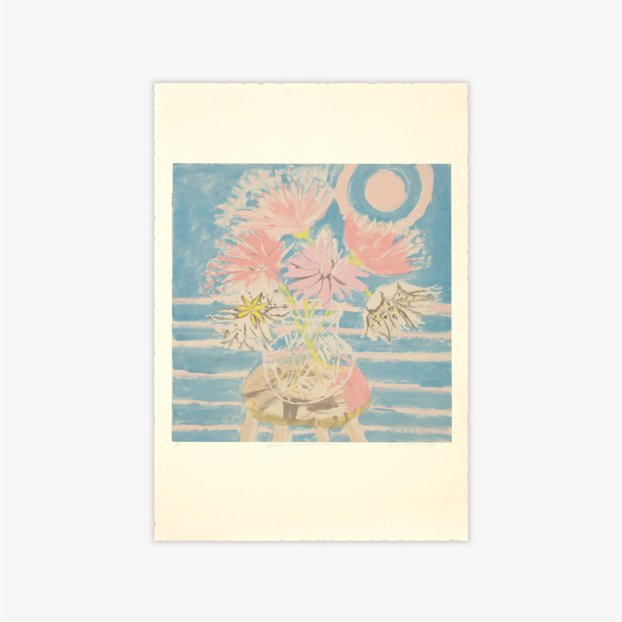 This unique series of 11 monotypes entitled Dahlia’s (For the Pink Moon) capture moments rooted in the artist’s memories, personal experiences, and inspirations. Whenever Craven paints flowers they are depicted in one of her mother’s crystal vases and in these series of prints the vase sits on top of a stool with a background of the moon rising, an ever-present symbol in the artist’s lexicon.