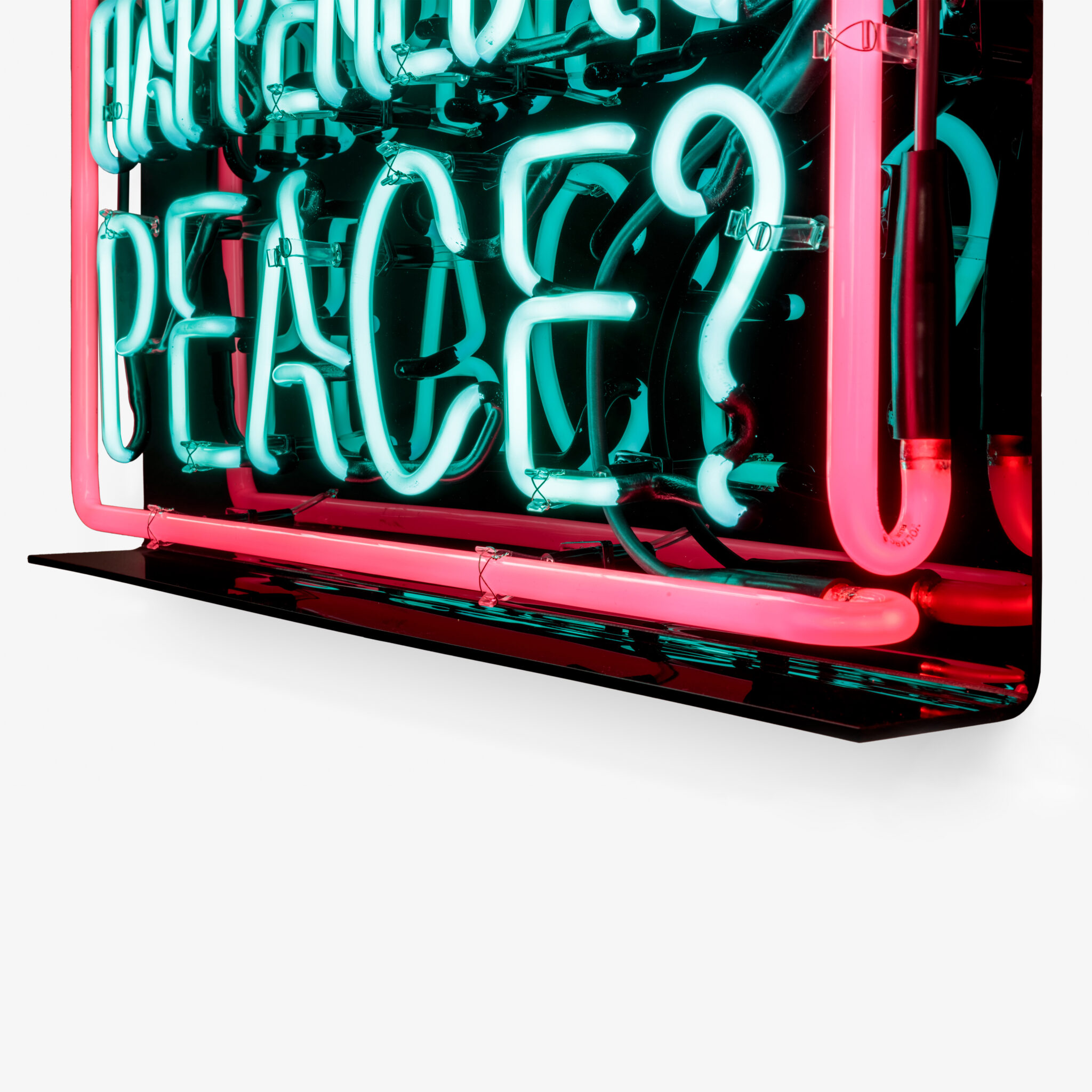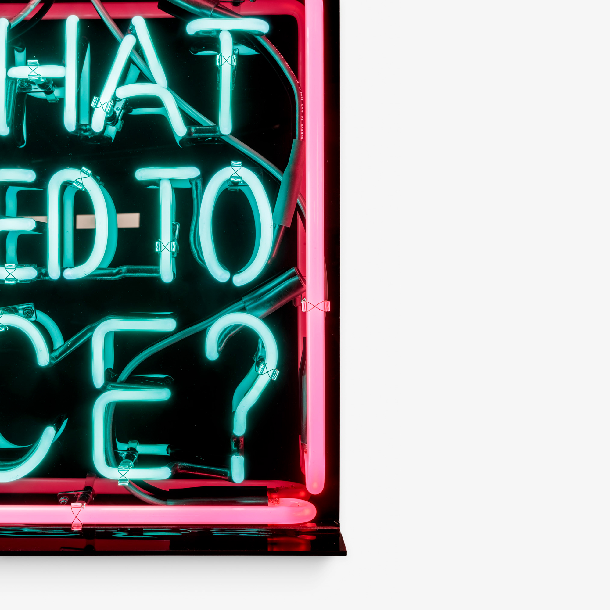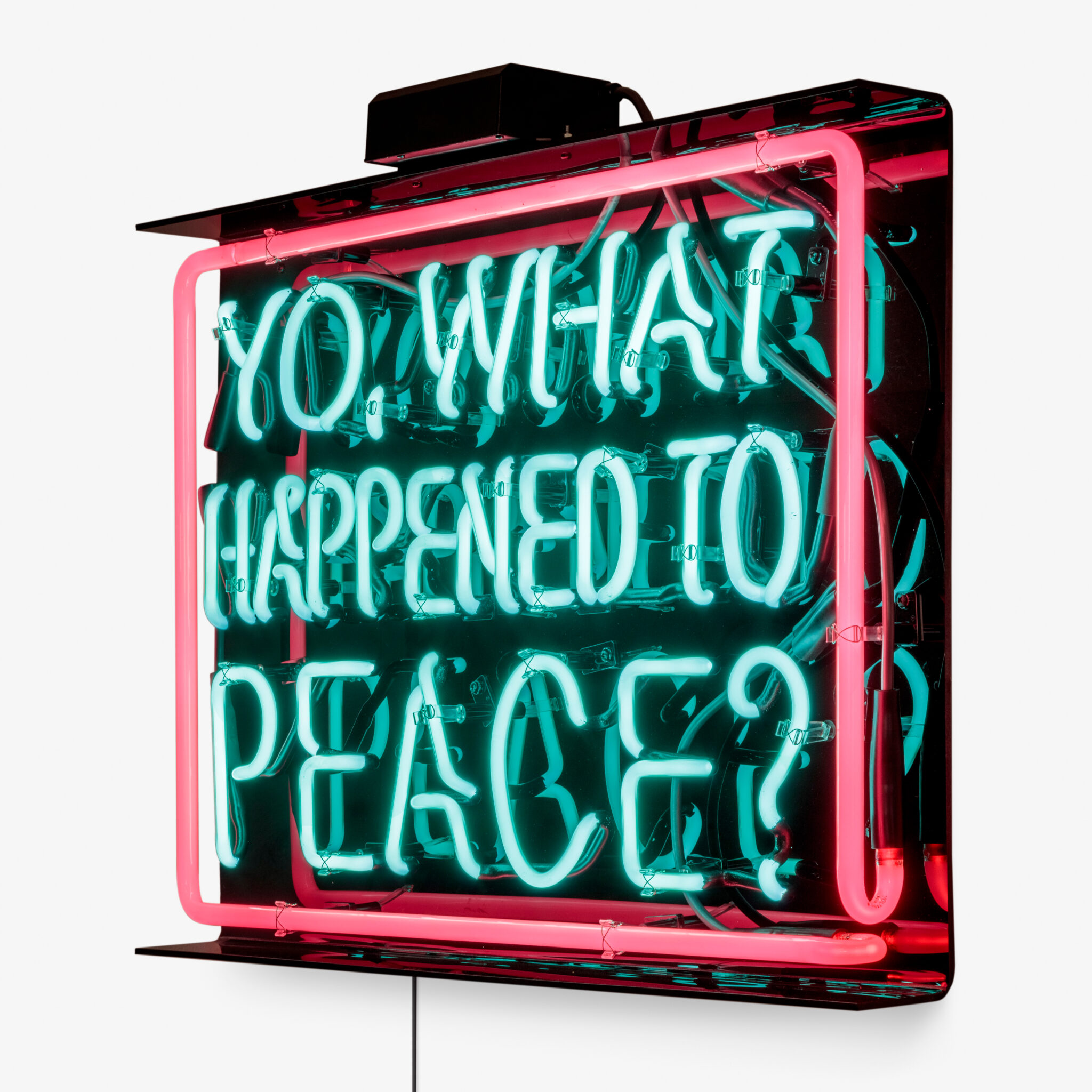 Patrick Martinez (b. 1980, Pasadena, CA; lives and works in Los Angeles) maintains a diverse practice that includes mixed media landscape paintings, neon sign pieces, “Cake Paintings,” and his “Pee Chee” appropriative series. The landscape paintings are abstractions composed of Los Angeles surface content; e.g. distressed stucco, spray paint, window security bars, vinyl signage, ceramic tile, neon sign elements, and other recognizable materials. His neon sign works are fabricated to mirror street level commercial signage, but are remixed to present words and phrases drawn from literary and oratorical sources. His acrylic on panel “Cake Paintings” memorialize leaders, activists, and thinkers, and the “Pee Chee” series documents the threats posed to black and brown youth by law enforcement. All these works serve to evoke place and socio-economic position, and further unearth sites of personal, civic and cultural loss.