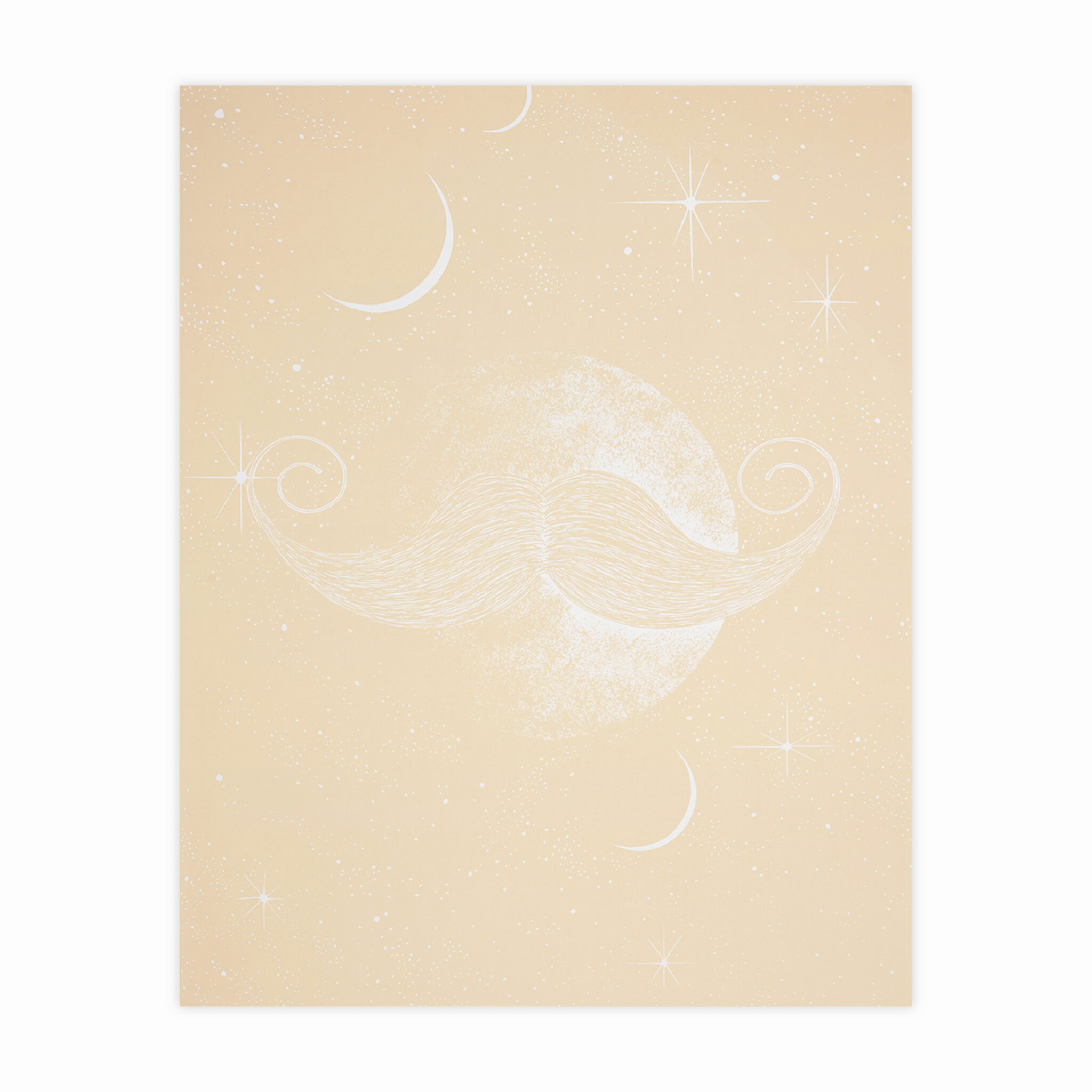 The Moon, a feminine symbol generally representing the cycles of the universe, is here adorned with a mustache, a masculine sign par excellence. Other waxing moons appear in the dark, starry sky. This composition, whose title is taken from a poem by the Welsh poet Dylan Thomas (1914–1953), portrays gender ambivalence and its symbolic and psychological complexities. A kind of latent tension emanates from the image and its initial surreal appearance.