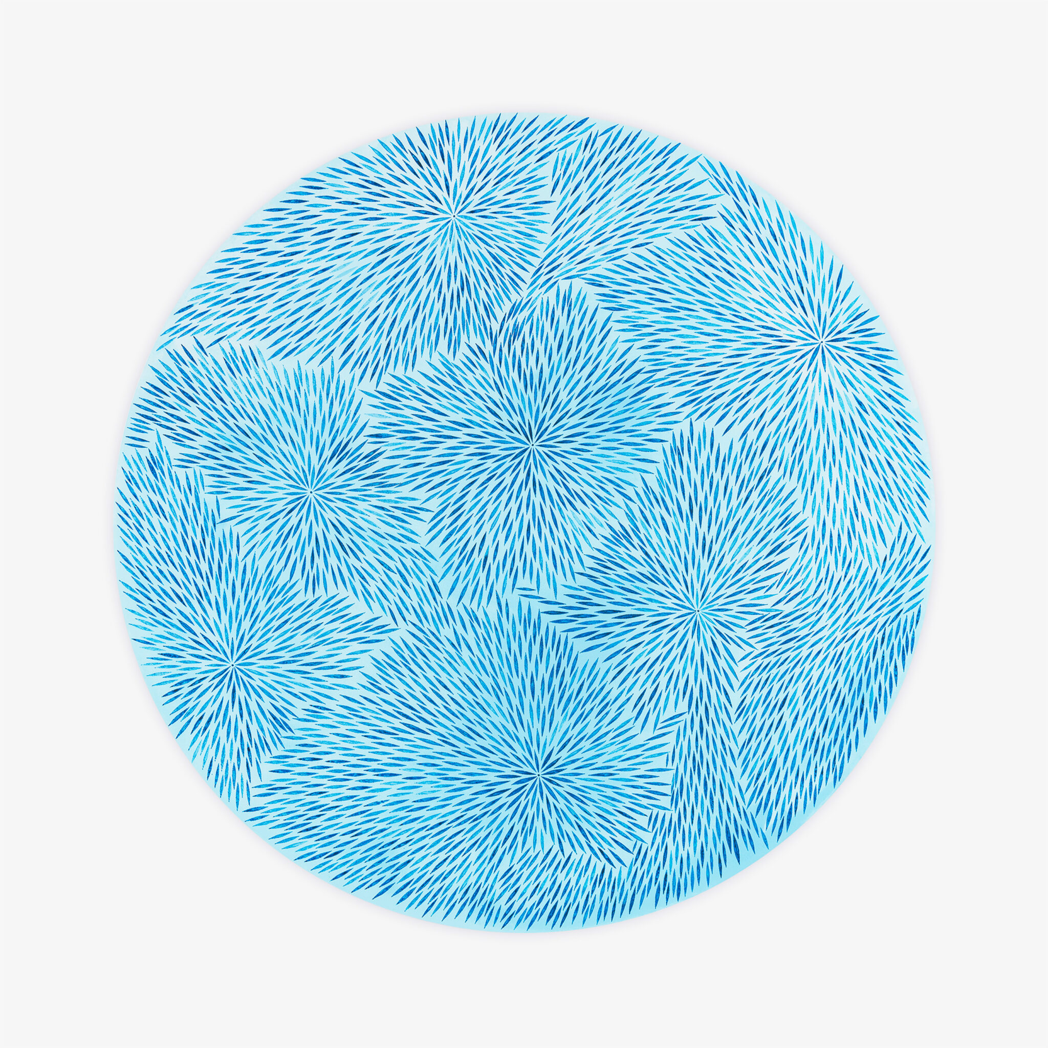This silkscreen edition is based on Julia Chiang’s tondo painting Squeeze So Tight And Hold It made in 2021. The print is produced using 11 colors to capture the subtleties in the original painting, echoing its varied intricacies. The work recreates a spontaneity and looseness of poured paint along with the controlled attempts of making and remaking marks and shapes.  It speaks to the artist’s preoccupation with cause and effect regarding forces of nature. Chiang’s working method can be meditative, emerging from a consideration of the body’s physical sense of self within and beyond. Her signature markings create a push and pull or rise and fall, analogous to the movements of our bodies, oceans, the earth and humanity at large.