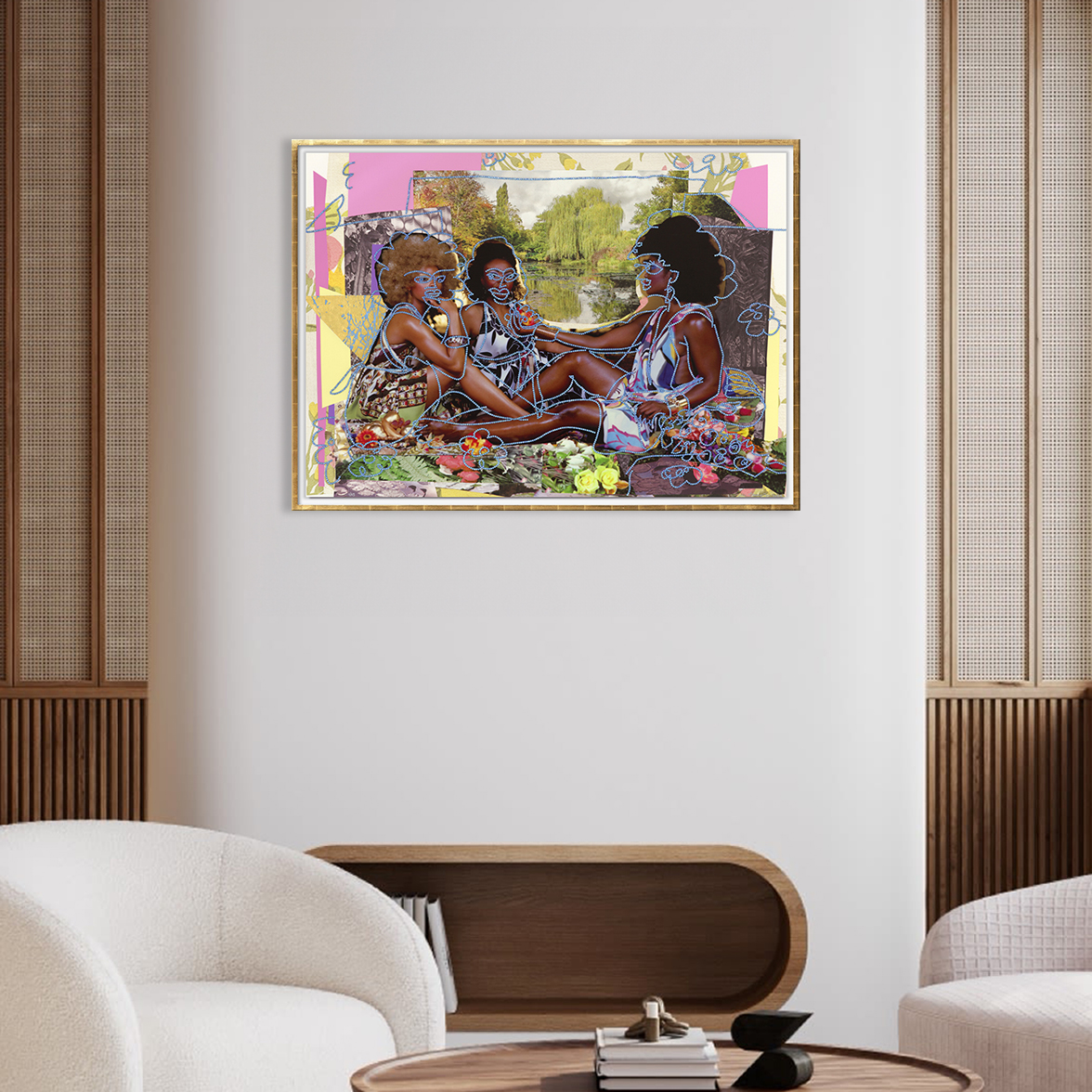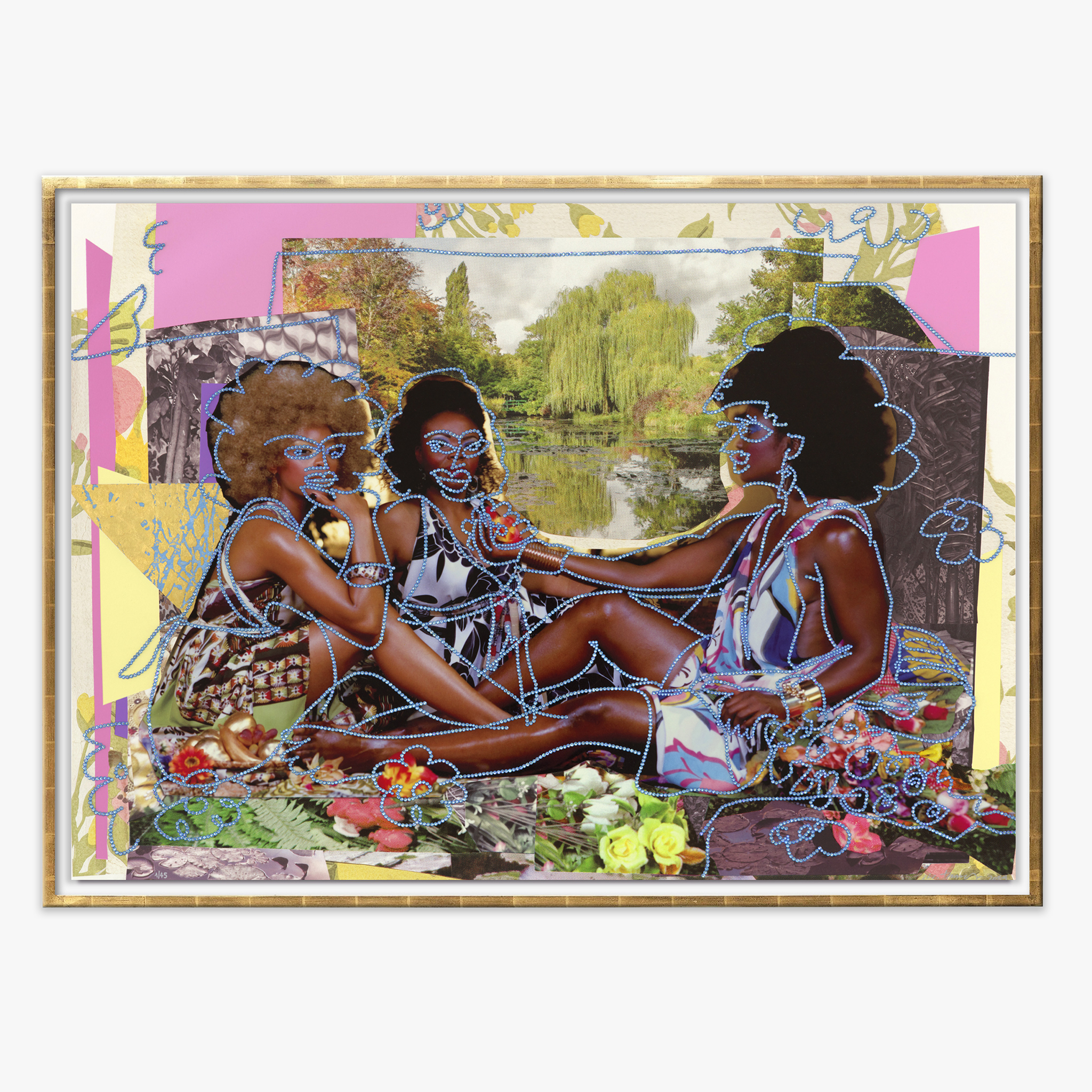 Mickalene Thomas is an award-winning multidisciplinary artist whose work has yielded instantly recognizable and widely celebrated aesthetic languages within contemporary visual culture. She is known for her elaborate portraits of Black women composed of rhinestones, acrylic, and enamel. Not only do her masterful mixed-media paintings, photographs, films and installations command space, they occupy eloquently while dissecting the intersecting complexities of black and female identity within the Western canon.