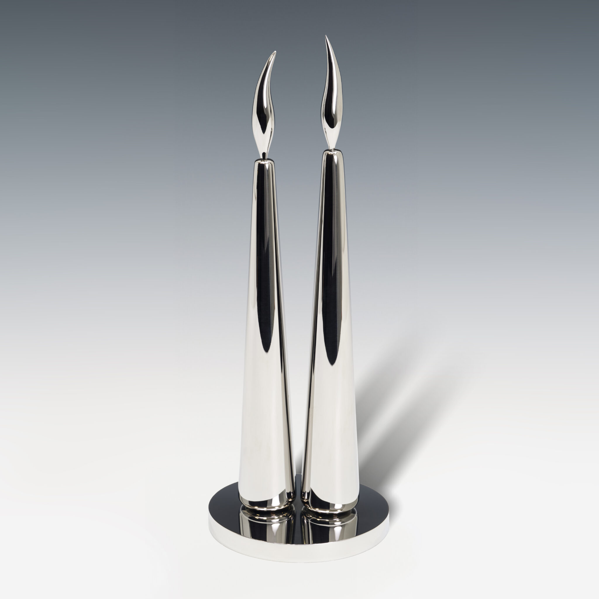 “The candles have evolved over many years. I’ve always been drawn to their simplicity as objects, and their potential for wide-ranging iconographic meaning. They’re often experienced personally, on an intimate scale, yet also serve as religious or memorial symbols. The sculpture includes two candles, conveying a coupling or relationship with a shared sense of loss or meditation.”