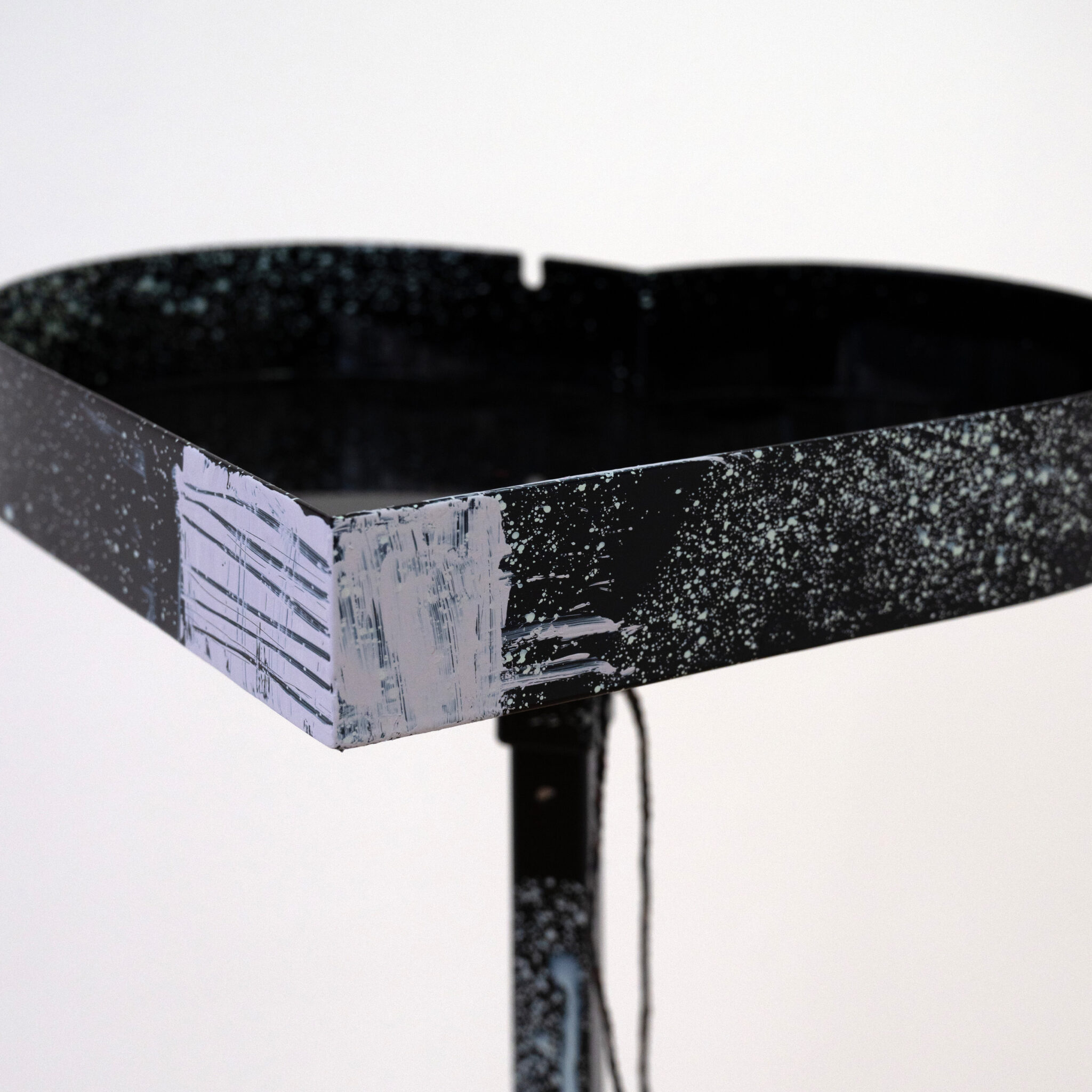 The present works explore with humour and sarcasm the idea of love: the artist decided to create a standing ashtray with a heart shape but with only one cigarette space holder. The sculptures are emblematic of Carron’s artistic practice and style, where he transforms and plays with the objects, landscapes, and architecture around him.