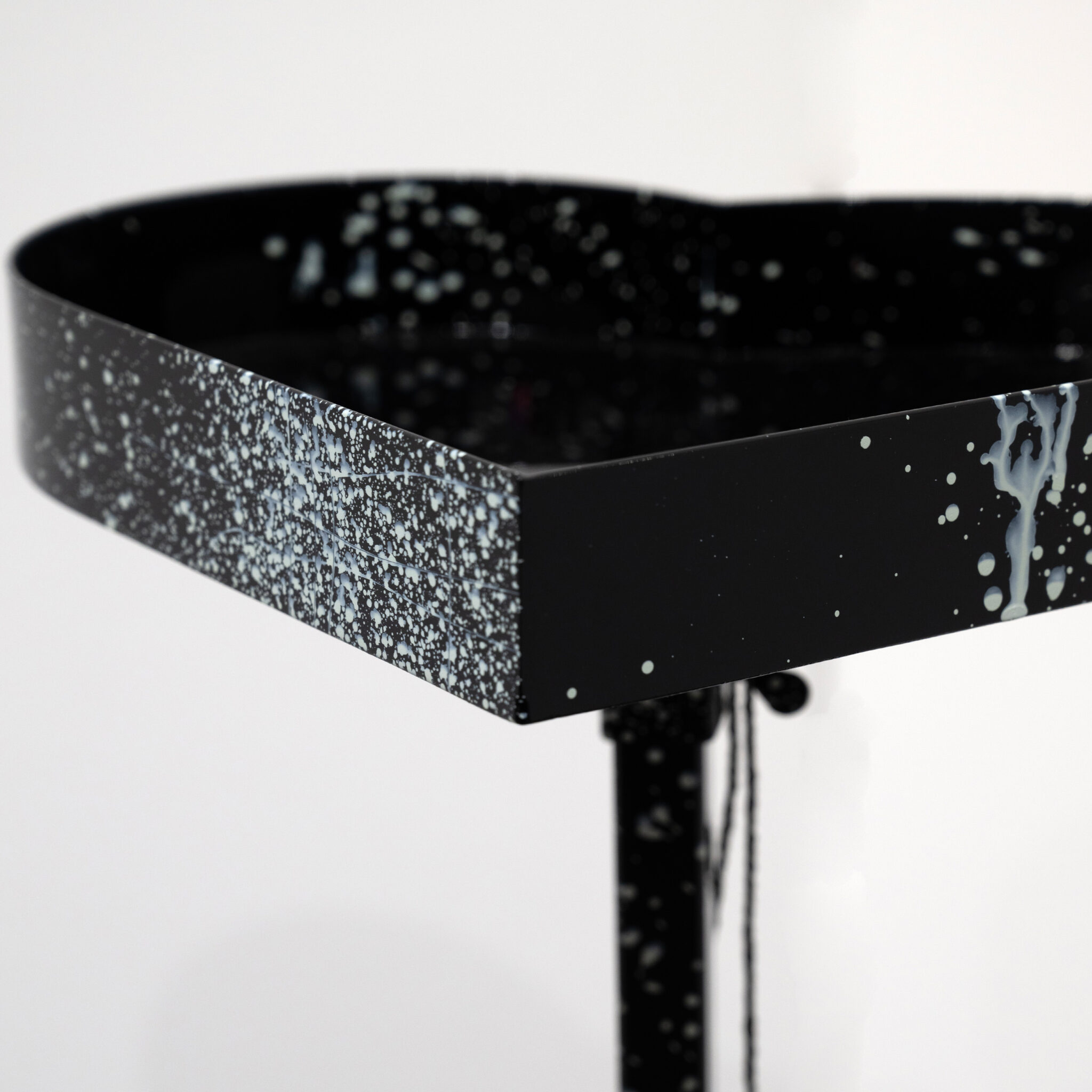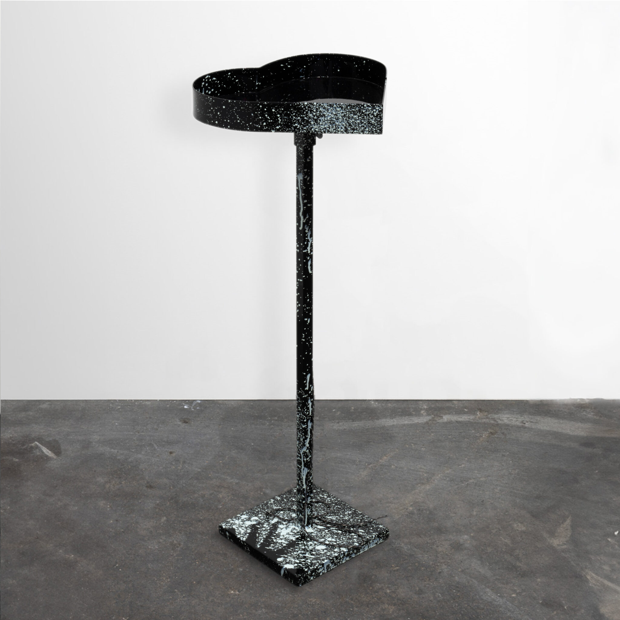 The present works explore with humour and sarcasm the idea of love: the artist decided to create a standing ashtray with a heart shape but with only one cigarette space holder. The sculptures are emblematic of Carron’s artistic practice and style, where he transforms and plays with the objects, landscapes, and architecture around him.