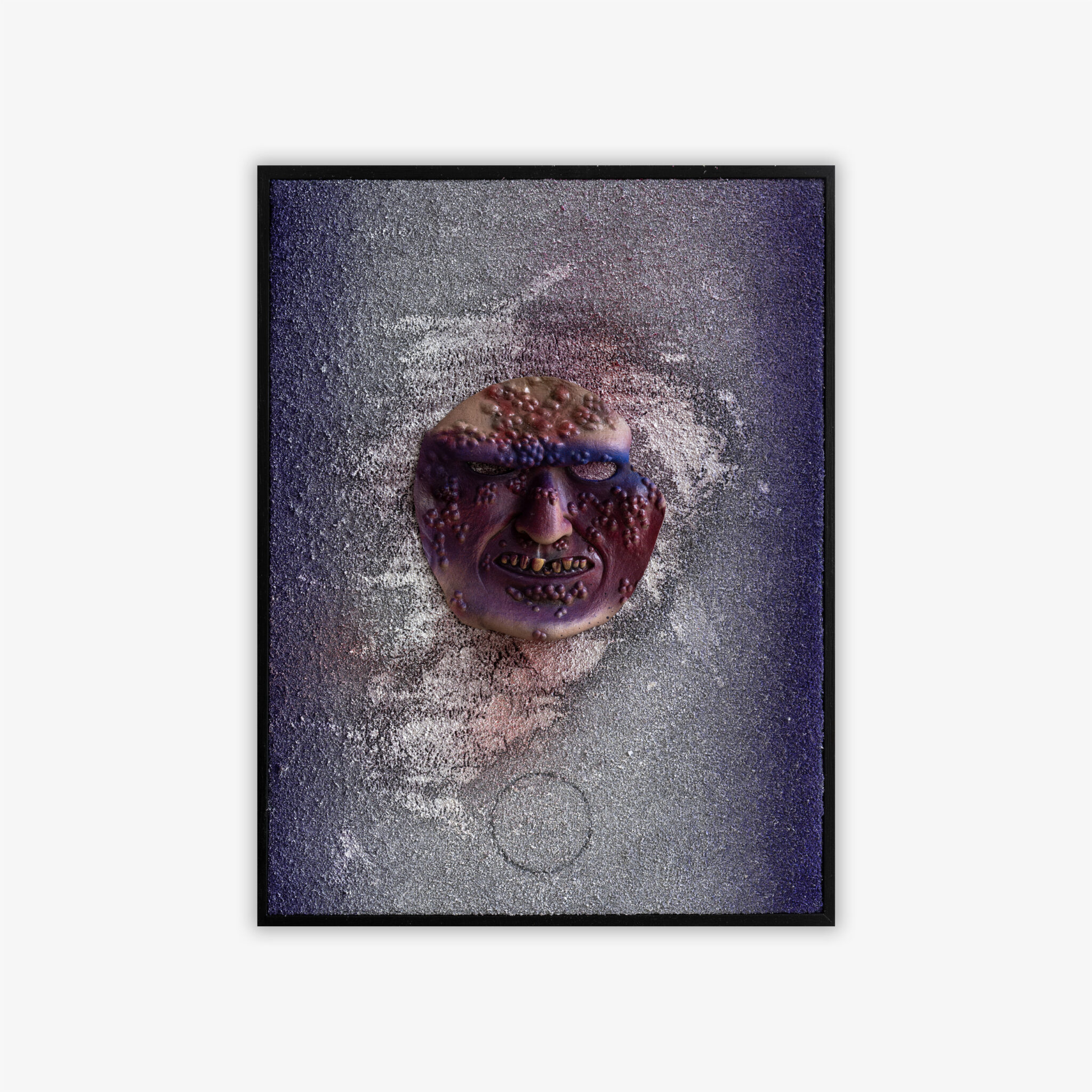 Acrylic paint on textile, miscellaneous objects, wooden frame
